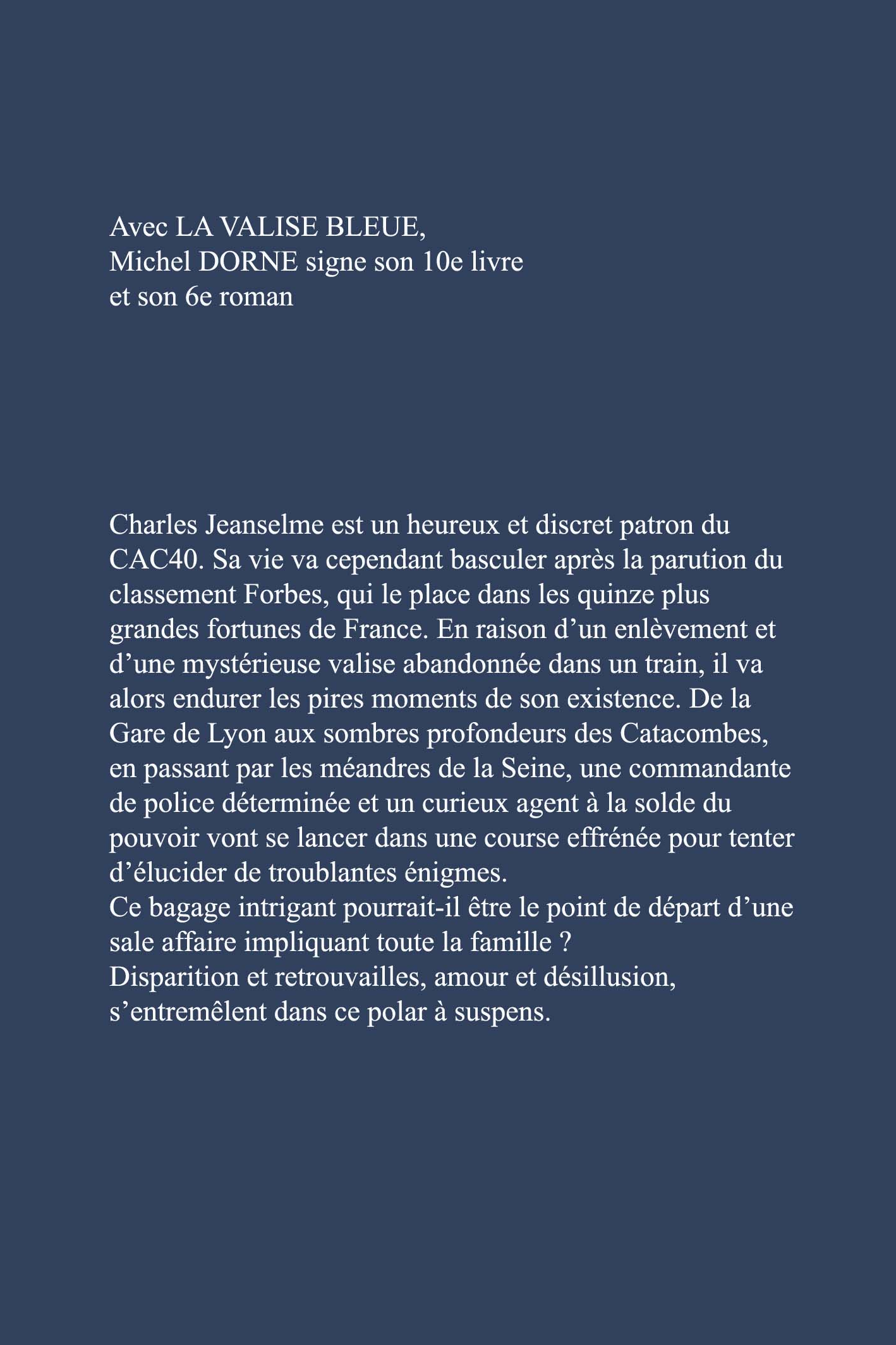 Charles Jeanselme est un heureux et discret patron du CAC 40. Sa vie va cependant basculer après la parution du classement Forbes, qui le place dans les quinze plus grandes fortunes de France. Un enlèvement et une mystérieuse valise abandonnée dans un train vont être à l'origine des pires moments de son existence. De la Gare de Lyon aux sombres profondeurs des Catacombes, en passant par les méandres de la Seine, une commandante de police déterminée et un curieux agent à la solde du pouvoir vont se lancer dans une course effrénée pour tenter d’élucider de troublantes énigmes. Ce bagage intrigant pourrait-il être le point de départ d’une sale affaire ou s'entremêlent disparition et retrouvailles, amour et désillusion.