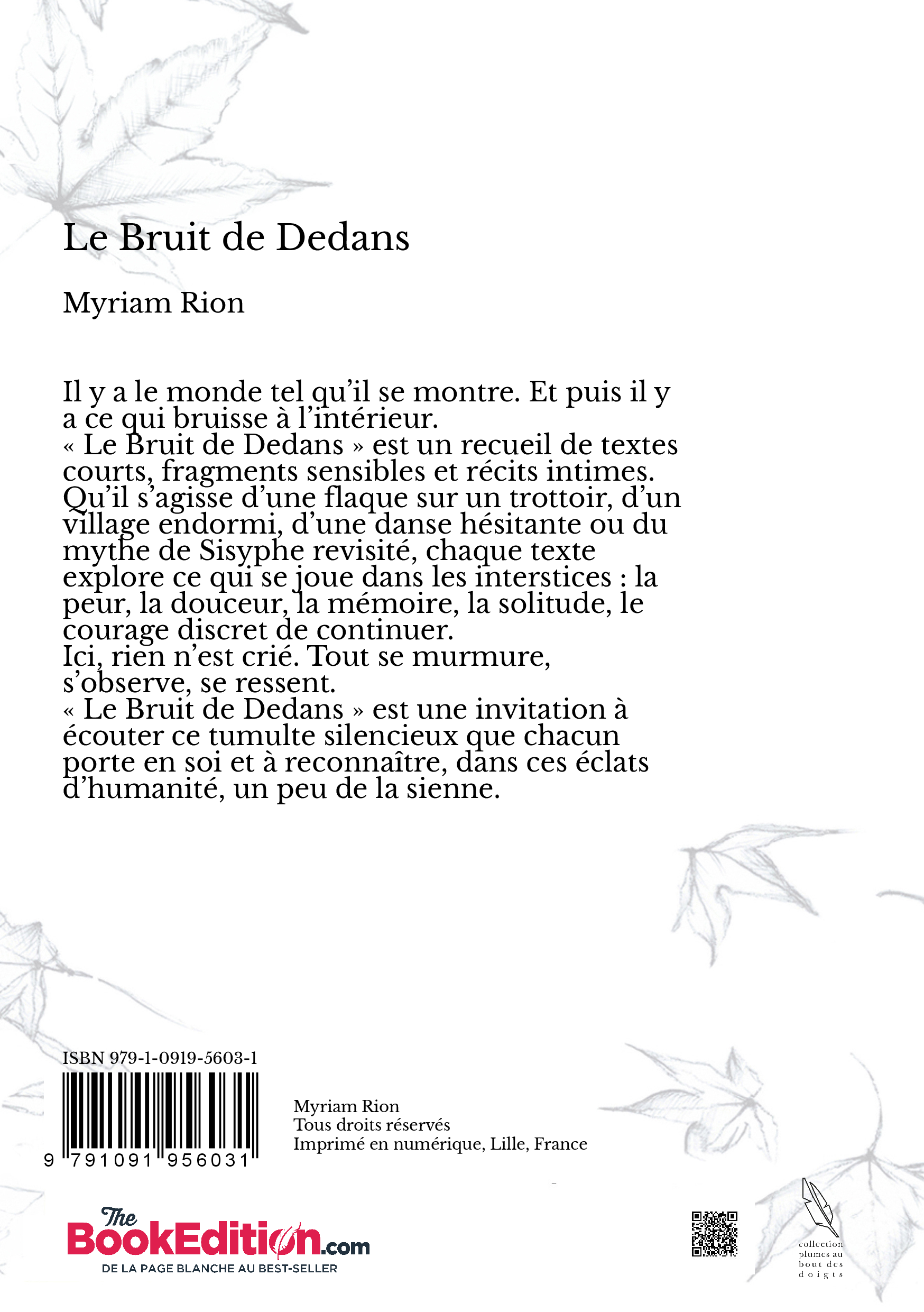 « Le Bruit de Dedans » est un recueil de textes courts, fragments sensibles et récits intimes, où l’humain avance à hauteur d’homme.