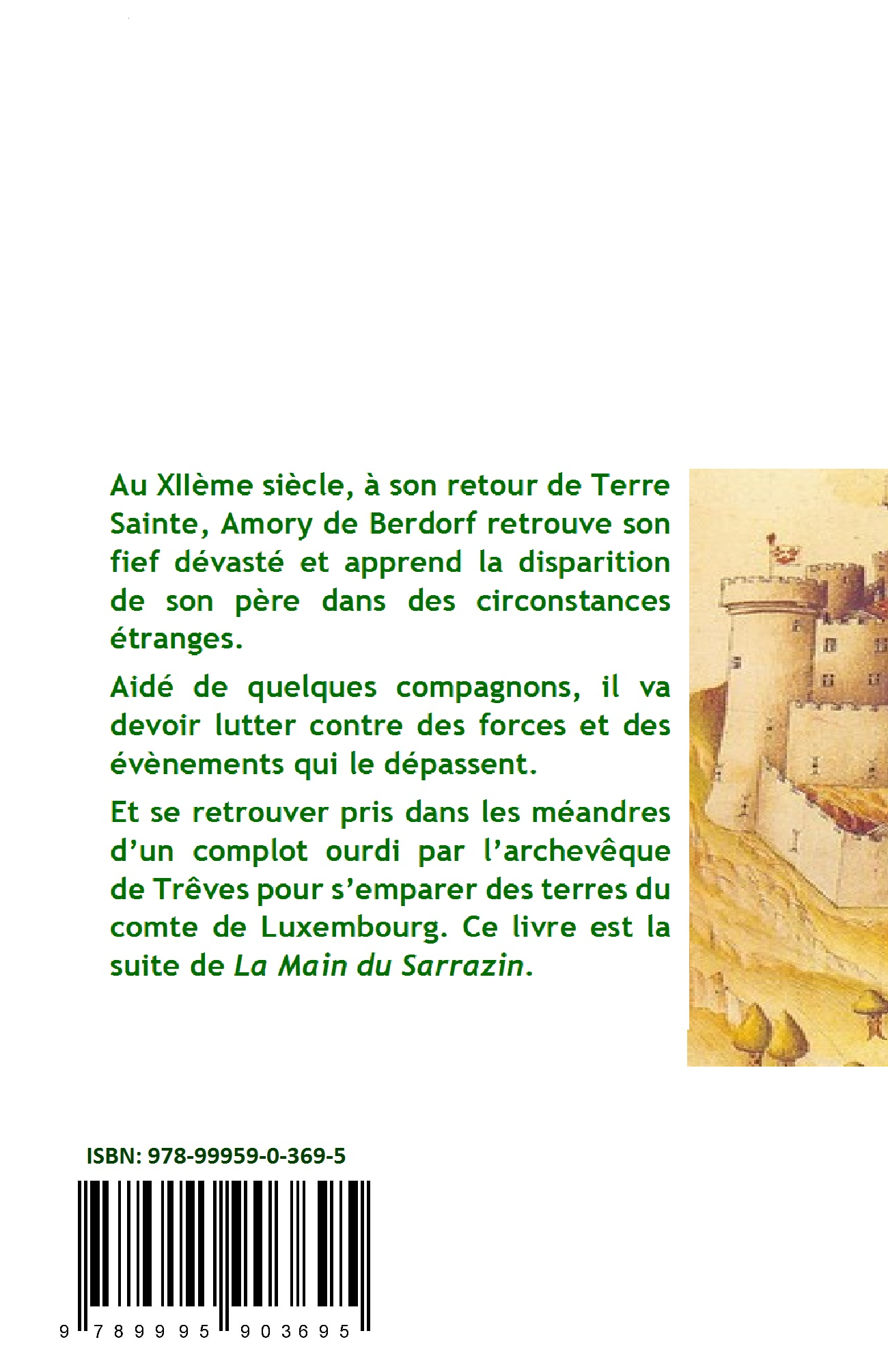 Au XIIème siècle, à son retour de Terre Sainte, Amory de Berdorf, retrouve ses domaines dévastés et son père disparu. Aidé de compagnons de rencontre, il devra se dépasser pour ramener l'ordre et la paix, menacés par un complot ourdi par l'archevêque de Trêves contre le comte de Luxembourg. Ce livre est la suite de La Main du Sarrazin.