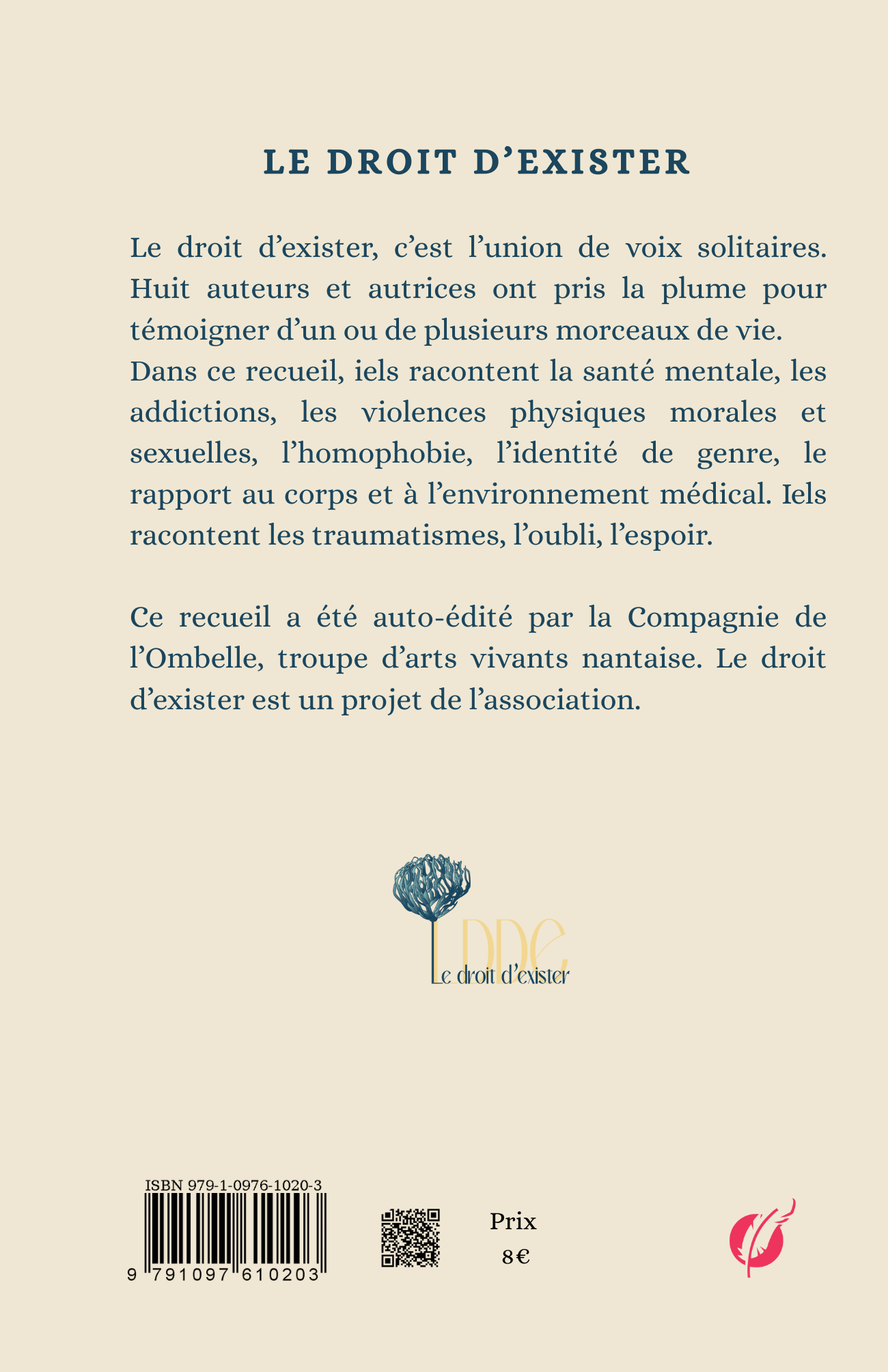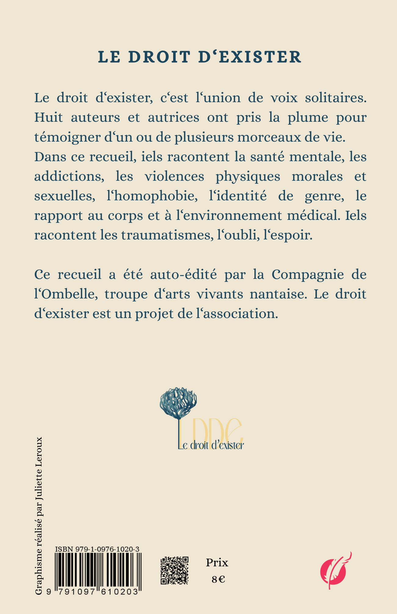 Ce recueil a été auto-édité par la Compagnie de l‘Ombelle, troupe d‘arts vivants nantaise. Le droit d‘exister est un projet de l‘association.