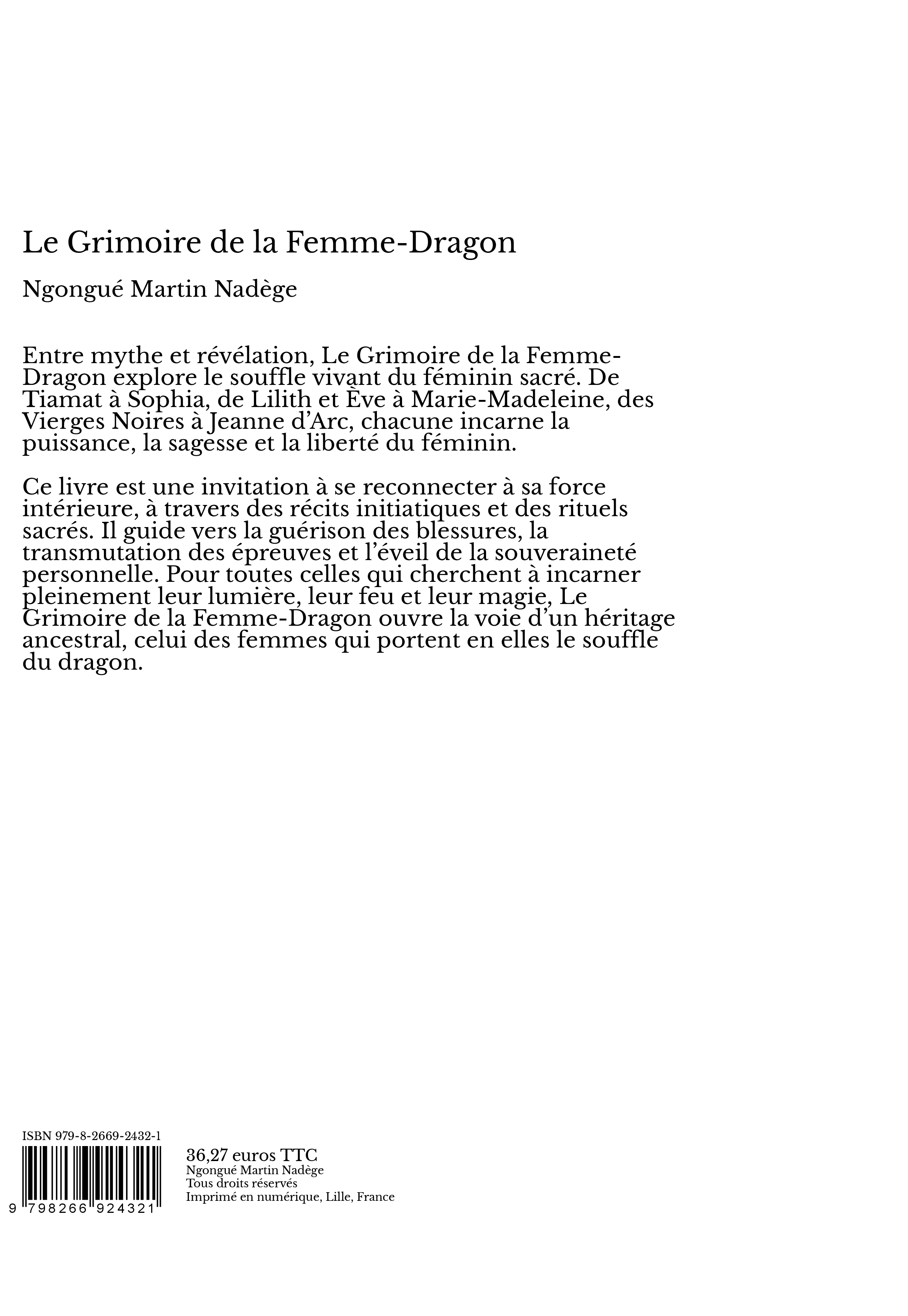 Entre mythe et révélation, Le Grimoire de la Femme-Dragon explore le souffle vivant du féminin sacré. De Tiamat à Sophia, de Lilith et Ève à Marie-Madeleine, des Vierges Noires à Jeanne d’Arc, chacune incarne la puissance, la sagesse et la liberté du féminin.
