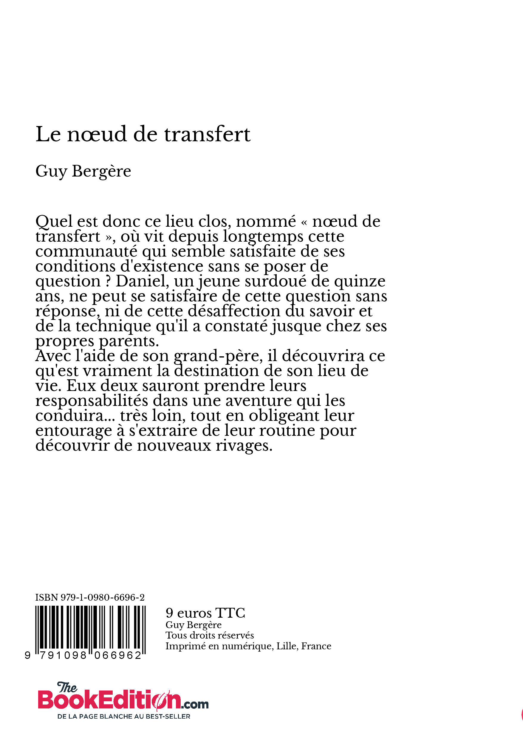 Quel est donc ce lieu clos, nommé « nœud de transfert », où vit depuis longtemps cette communauté qui semble satisfaite de ses conditions d'existence sans se poser de question ? Daniel, un jeune surdoué de quinze ans, ne peut se satisfaire de cette question sans réponse, ni de cette désaffection du savoir et de la technique qu'il a constaté jusque chez ses propres parents.