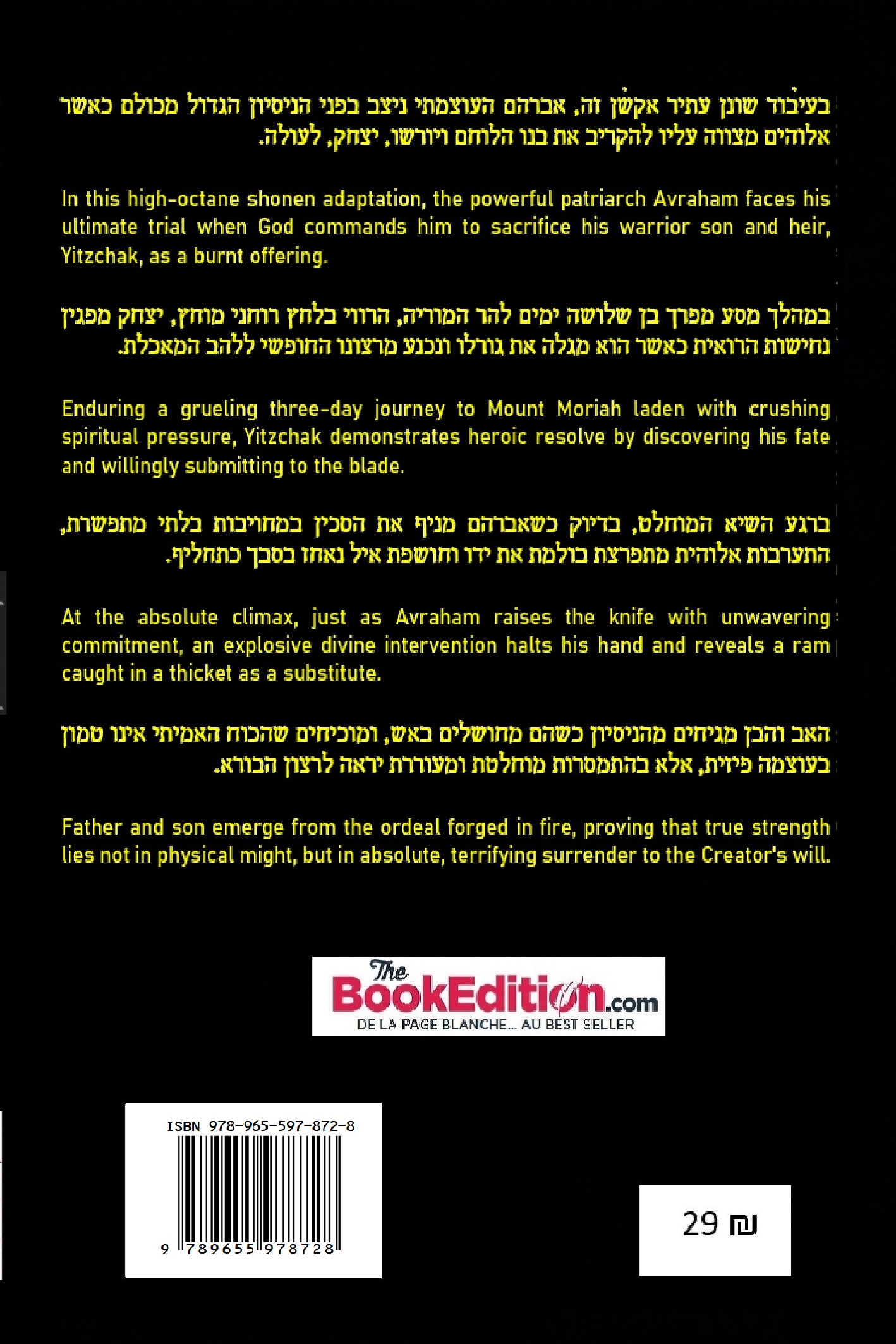 Dans cette adaptation shōnen survoltée, le puissant patriarche Avraham fait face à son épreuve ultime lorsque Dieu lui ordonne de sacrifier son fils guerrier et héritier, Yitzchak, en holocauste.
