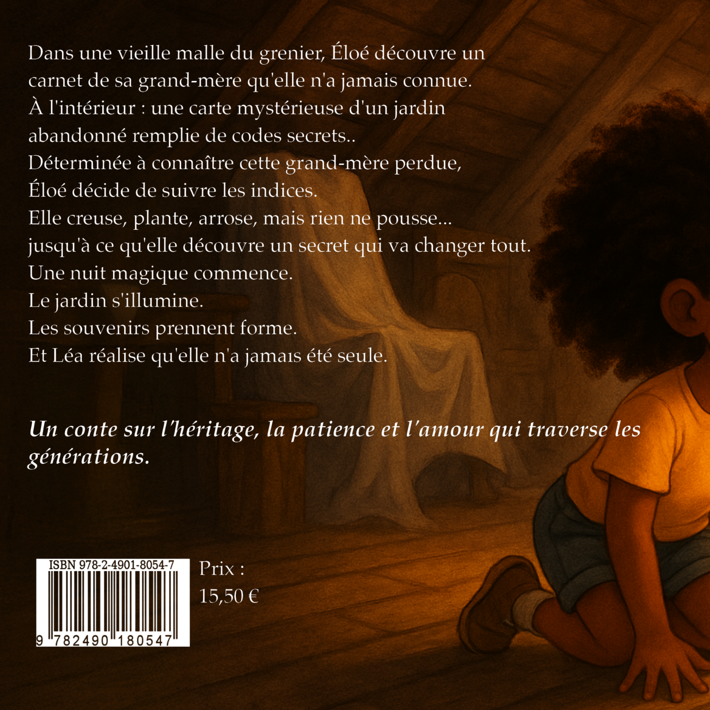 Quand Éloé emménage dans la maison d'enfance de son papa, elle découvre un jardin abandonné... et un mystère enfoui dans un grenier. Un vieux carnet botanique. Des dessins énigmatiques. Une carte au trésor dessinée par sa grand-mère qu'elle n'a jamais connue.