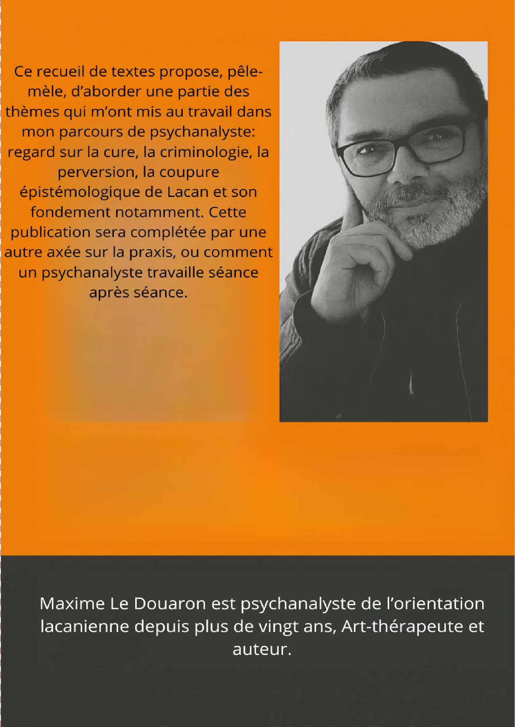 Ce premier ouvrage se propose de mettre en avant ce qui m'a mis au travail dans mon parcours de psychanalyste, à travers des thèmes aussi essentiels que la fin de vie, la criminologie, l’identité sexuelle, la transmission du savoir analytique, la dimension psychique de la mort et son accompagnement éthique.