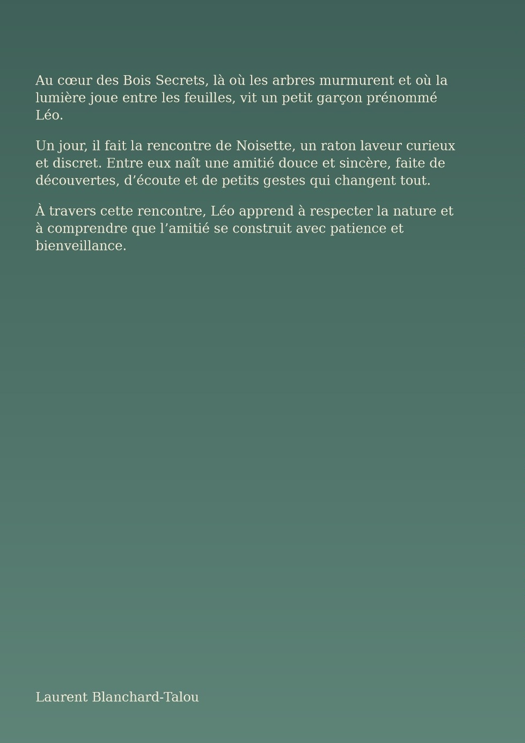 Léo et Noisette, le raton laveur des Bois Secrets est un conte doux et lumineux sur la rencontre, la confiance et la magie du monde vivant.