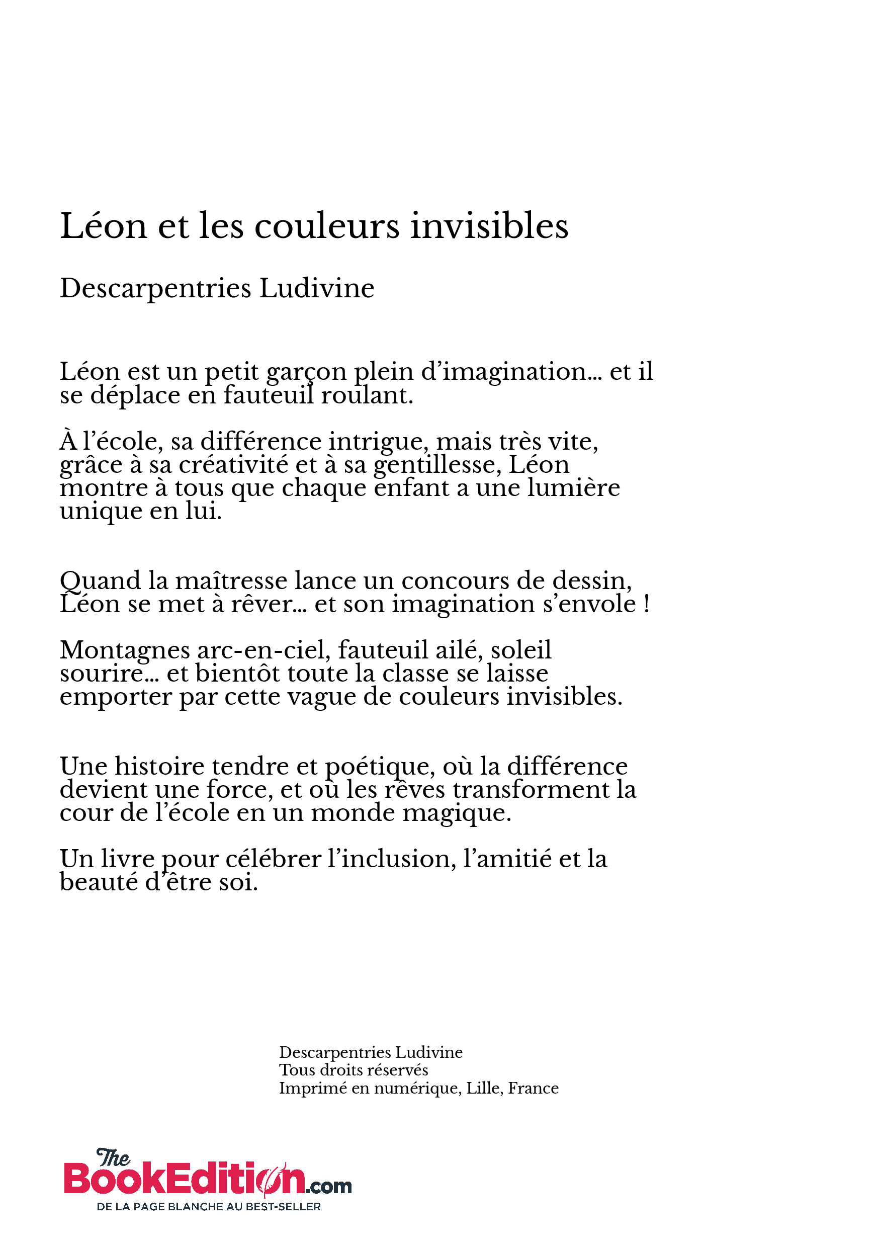 À l’école, sa différence intrigue, mais très vite, grâce à sa créativité et à sa gentillesse, Léon montre à tous que chaque enfant a une lumière unique en lui.