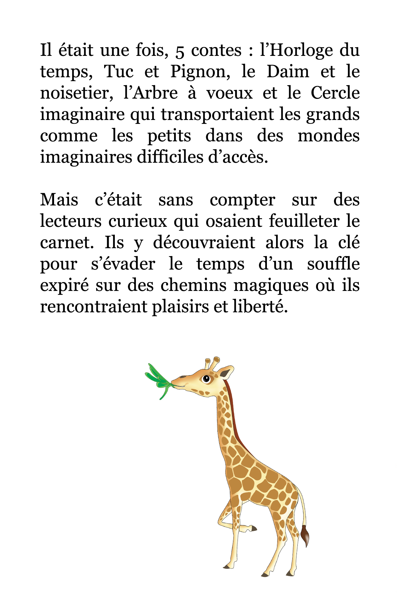 Il était une fois, 5 contes : Tuc et Pignon, l’Horloge du temps, Daim et le noisetier, l’Arbre à vœux et le Cercle imaginaire qui transportaient les grands comme les petits dans des mondes imaginaires difficiles d’accès.