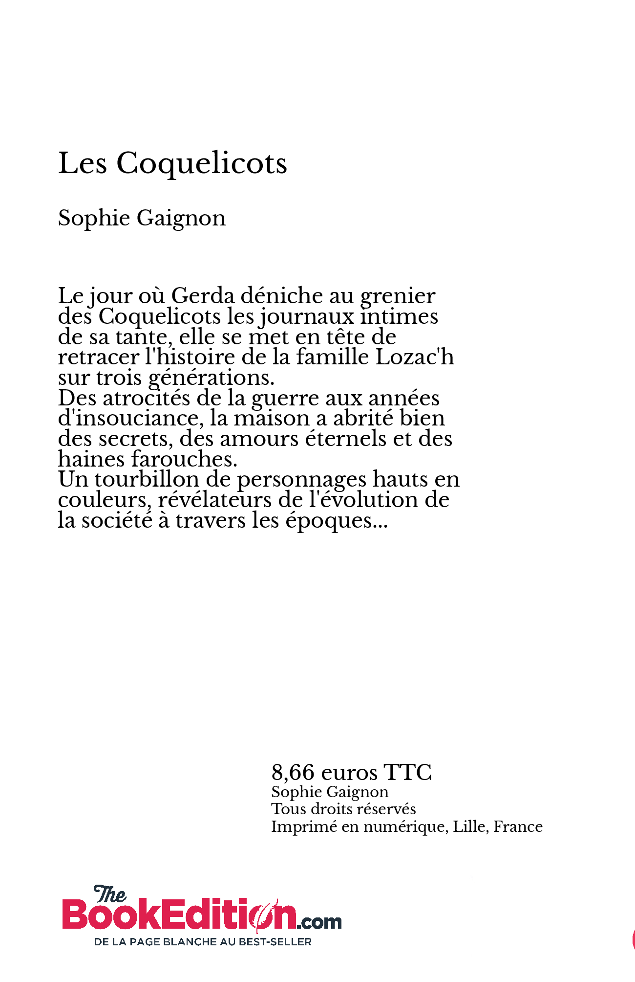 Le jour où Gerda déniche au grenier des Coquelicots les journaux intimes de sa tante, elle se met en tête de retracer l'histoire de la famille Lozac'h sur trois générations.