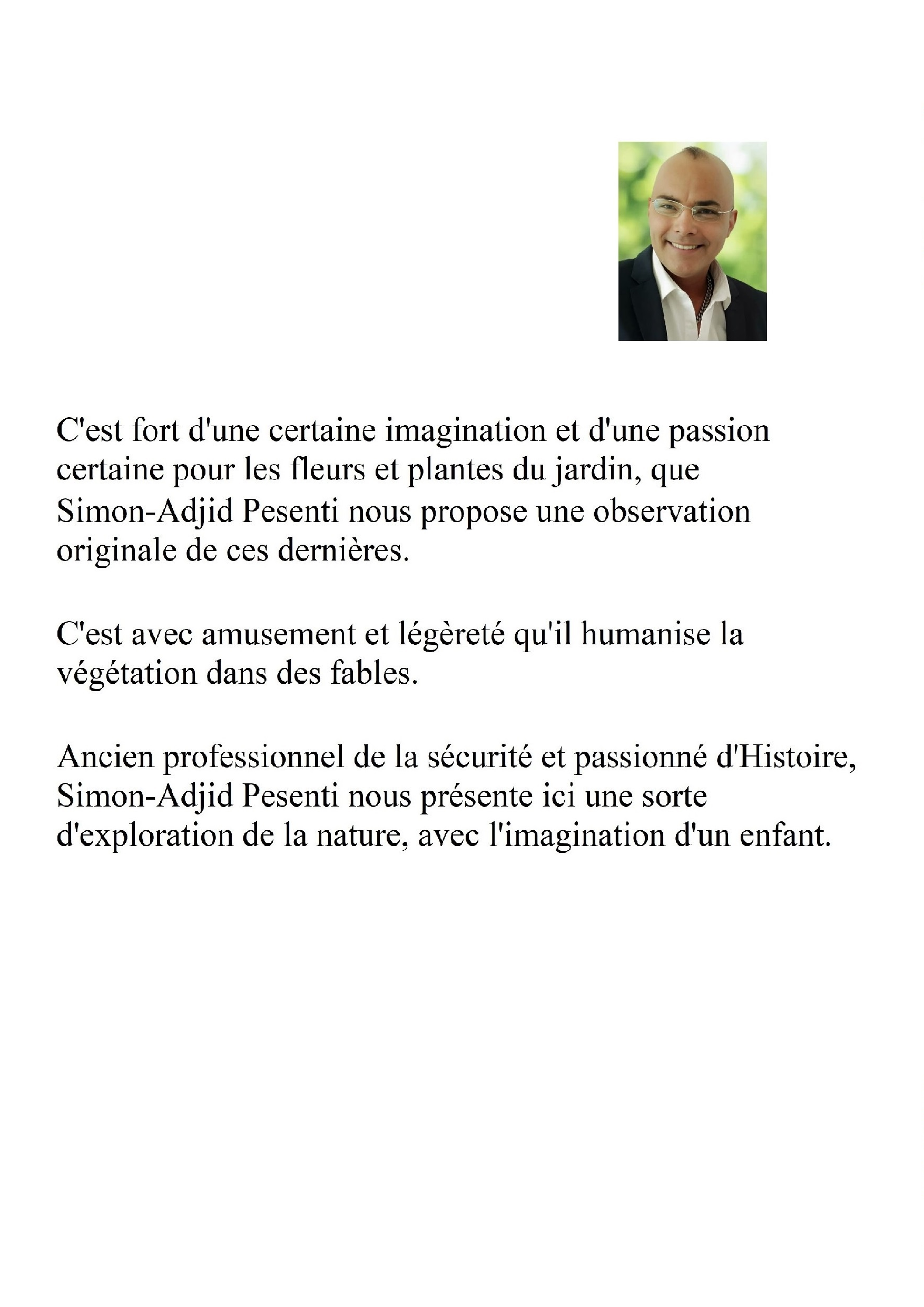 Ancien professionnel de la sécurité et passionne d'Histoire Simon-Adjid Pesenti nous présente ici une sorte d'exploration de la nature, avec l’imagination d'un enfant.