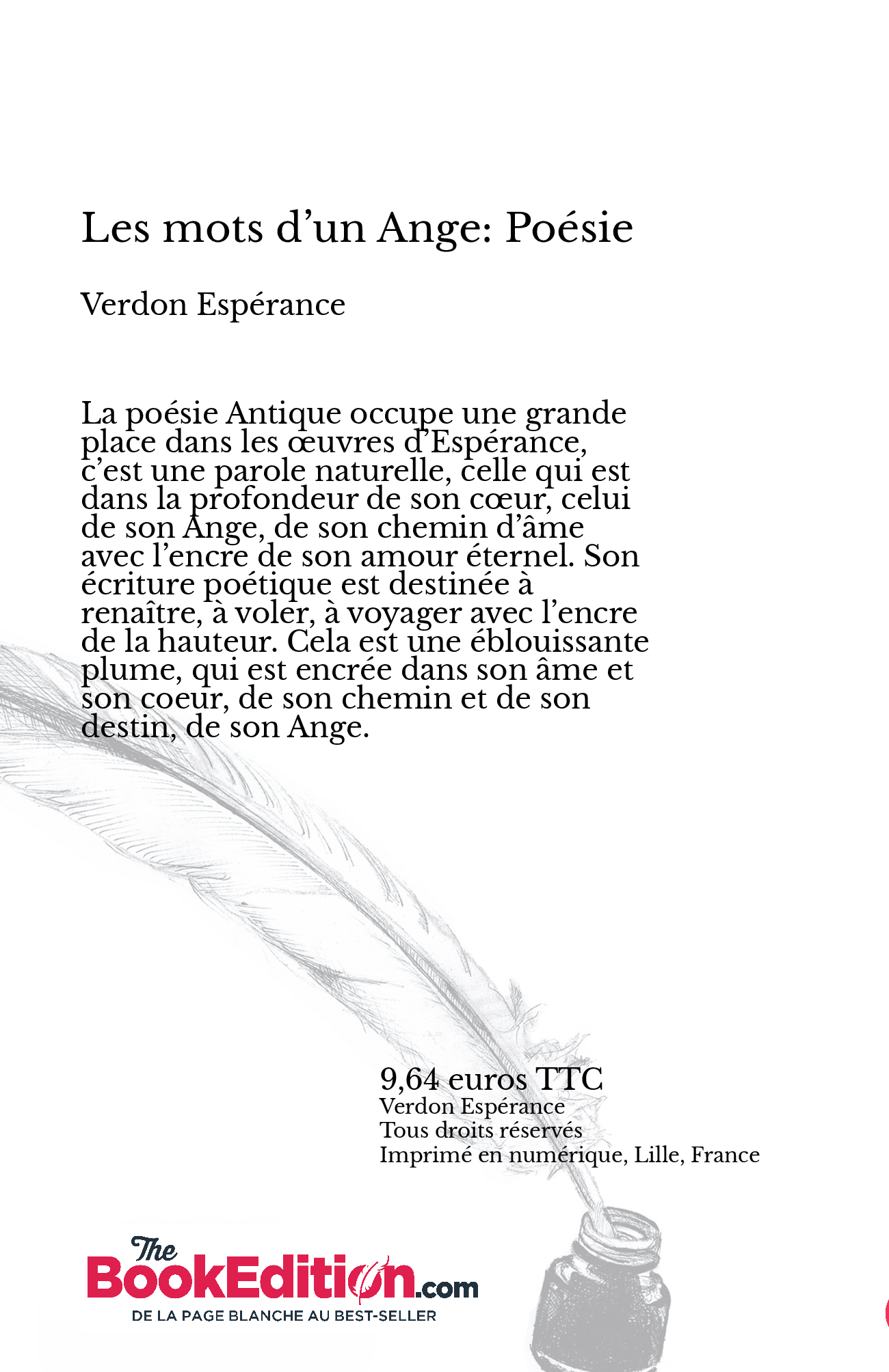 La poésie Antique occupe une grande place dans les œuvres d’Espérance, c’est une parole naturelle, celle qui est dans la profondeur de son cœur, celui de son Ange, de son chemin d’âme avec l’encre de son amour éternel. Son écriture poétique est destinée à renaître, à voler, à voyager avec l’encre de la hauteur. Cela est une éblouissante plume, qui est encrée dans son âme et son coeur, de son chemin et de son destin, de son Ange.
