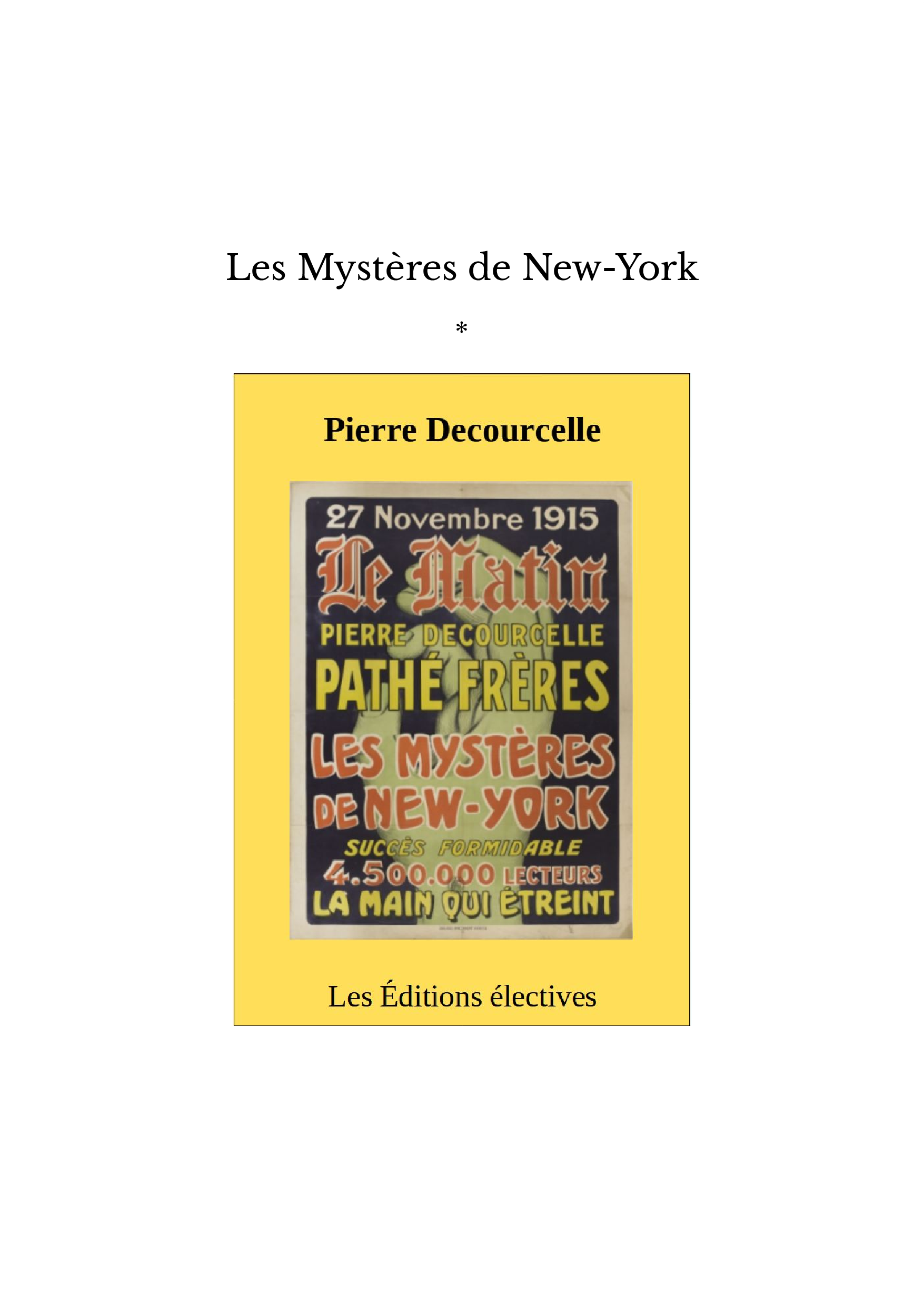 Nous proposons une publication des fameux "Mystères de New-York", roman-feuilleton paru pendant la Première Guerre mondiale, et jamais édité, jusqu'à aujourd'hui, à la fois en volume et en intégralité !
