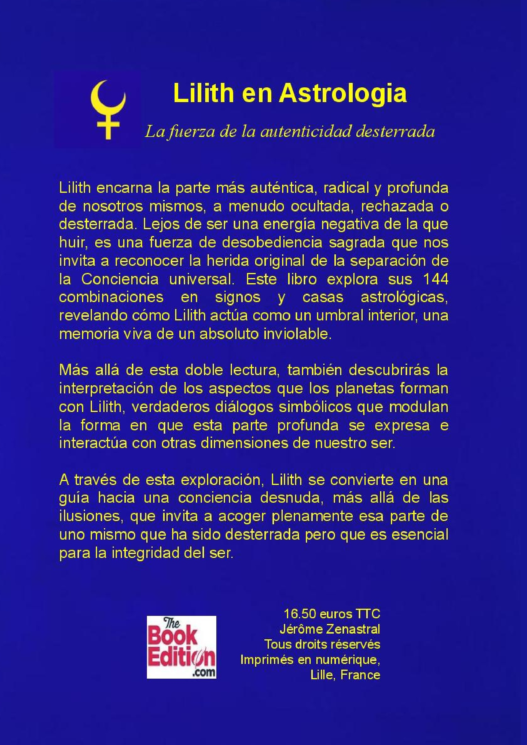 Lilith encarna la parte más auténtica, radical y profunda de nosotros mismos, a menudo ocultada o expulsada. Lejos de ser una energía negativa, es una fuerza de desobediencia sagrada que invita a reconocer la herida de la separación de la Conciencia universal. Este libro explora sus 144 combinaciones en signos y casas, mostrando a Lilith como umbral interior y memoria viva de un absoluto inviolable. Incluye además la interpretación de los aspectos planetarios con Lilith, verdaderos diálogos simbólicos que revelan cómo esta fuerza profunda se expresa e interactúa con las demás dimensiones del ser.