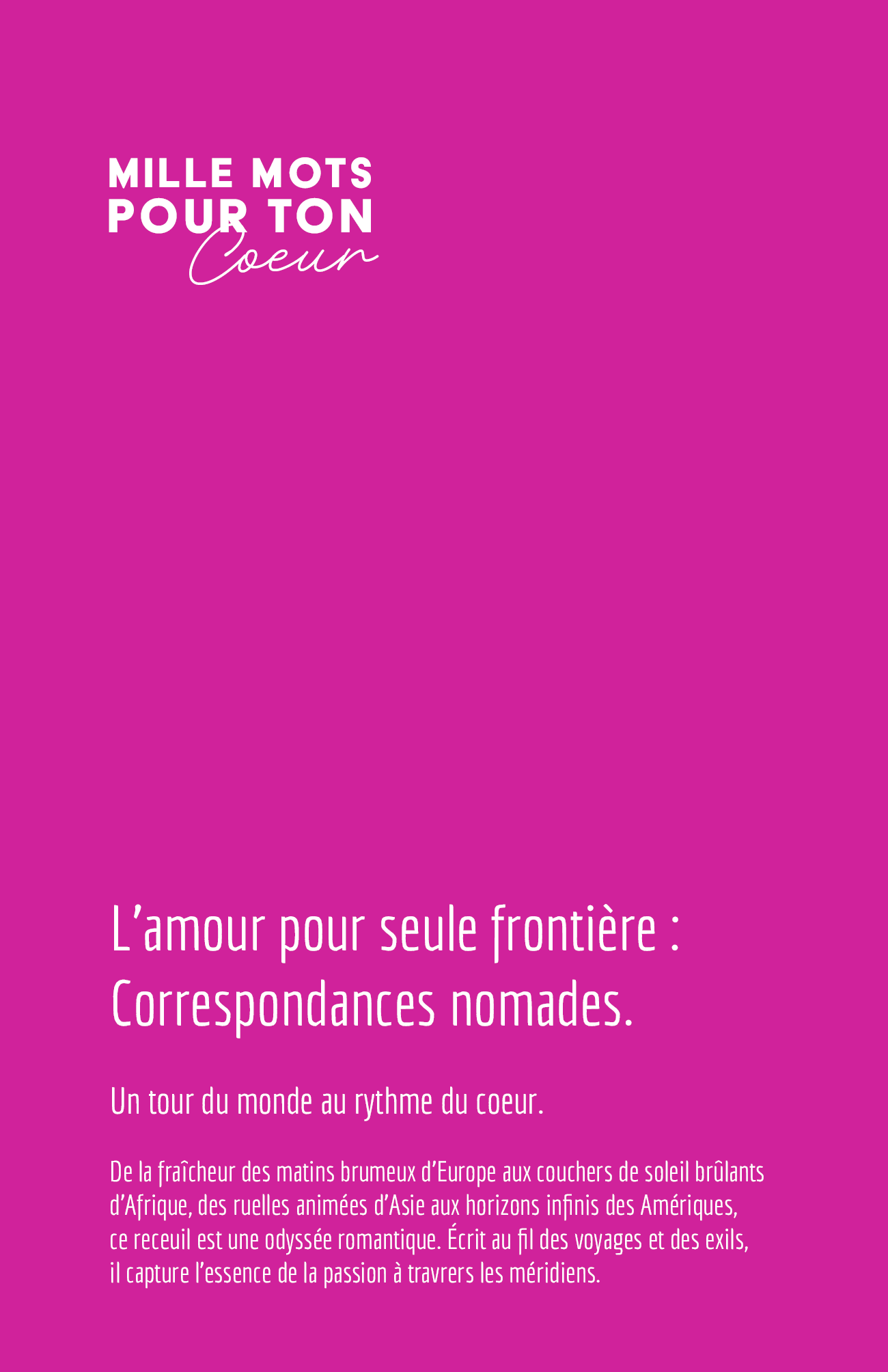 De la fraîcheur des matins brumeux d'Europe aux couchers de soleil brûlants d'Afrique, des ruelles animées d'Asie aux horizons infinis des Amériques, ce recueil est une odyssée romantique. Écrit au fil des voyages et des exils, il capture l'essence de la passion à travers les méridiens.