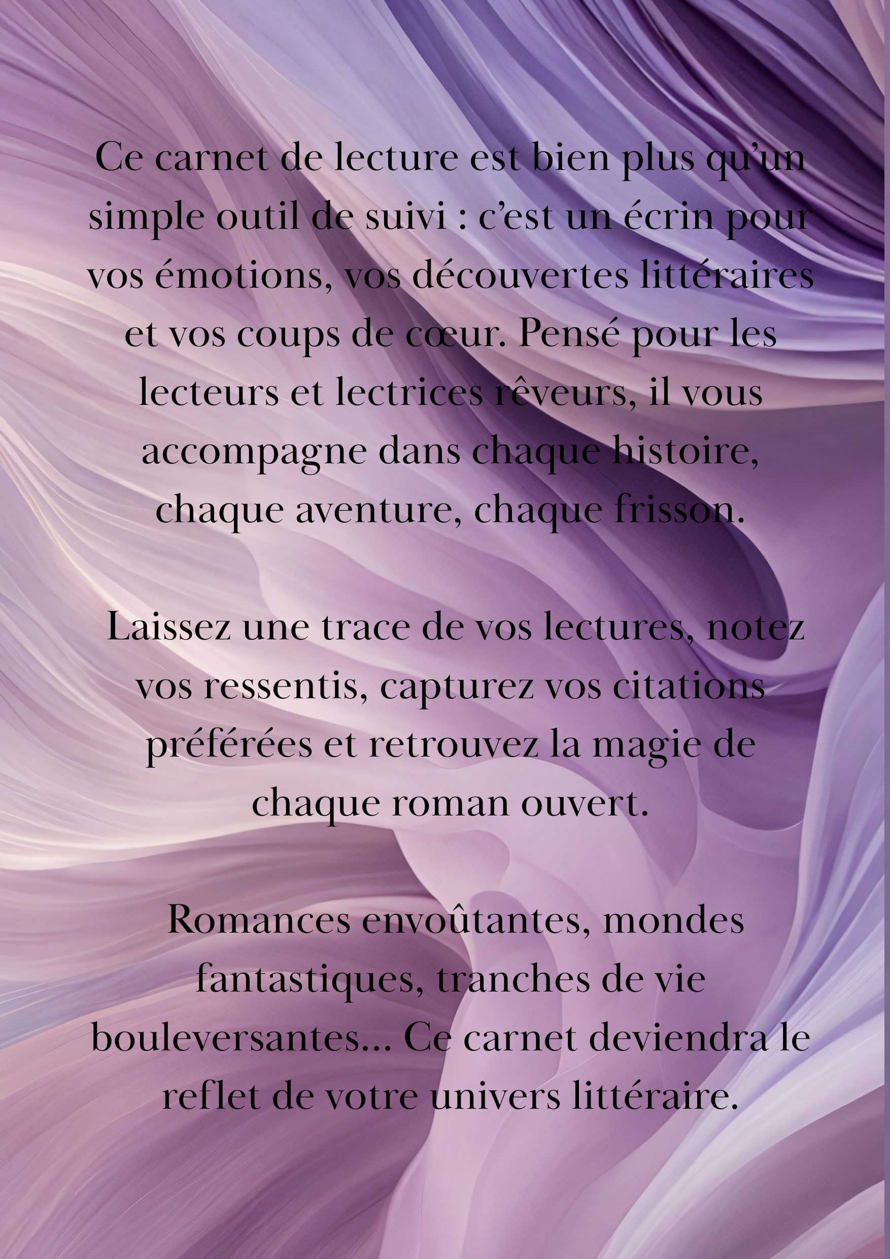 Ce carnet de lecture est bien plus qu’un simple outil de suivi : c’est un écrin pour vos émotions, vos découvertes littéraires et vos coups de cœur. Pensé pour les lecteurs et lectrices rêveurs, il vous accompagne dans chaque histoire, chaque aventure, chaque frisson.