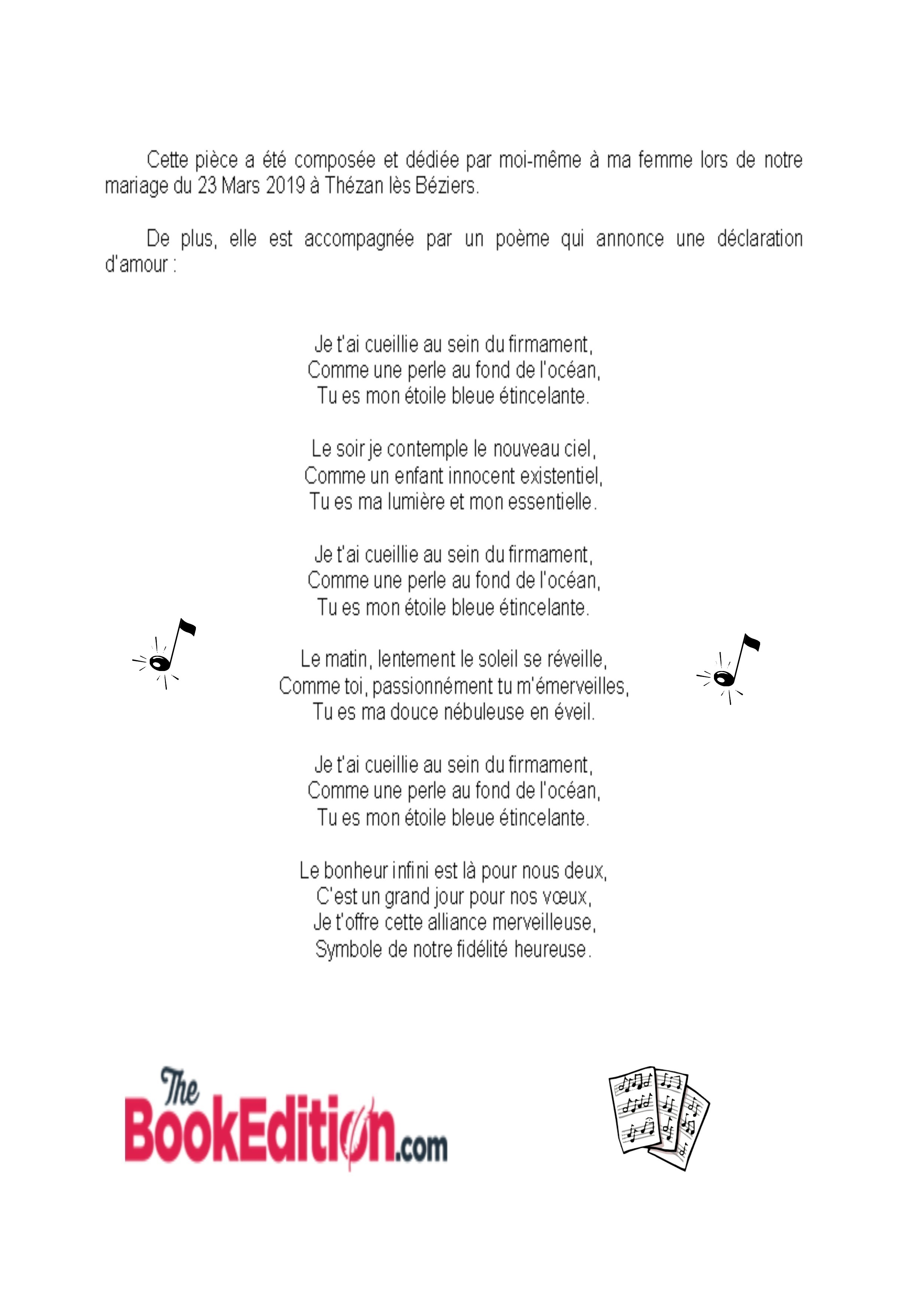 "Mon étoile bleue", cette pièce a été composée et dédiée à ma femme lors de notre mariage du 23 Mars 2019 à Thézan lès Béziers.