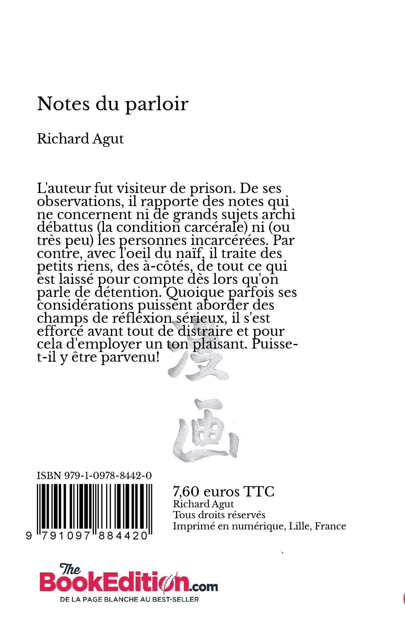 L'auteur fut visiteur de prison. De ses observations, il rapporte des notes qui ne concernent ni de grands sujets archi débattus (la condition carcérale) ni (ou très peu) les personnes incarcérées. Par contre, avec l'oeil neuf du naïf, il traite des petits riens, des à-côtés, de tout ce qui est laissé pour compte dès lors qu'on parle de détention. Quoique parfois ses considérations puissent aborder des champs de réflexion sérieux, il s'est efforcé avant tout de distraire et pour cela d'employer un ton plaisant. Puisse-t-il y être parvenu!