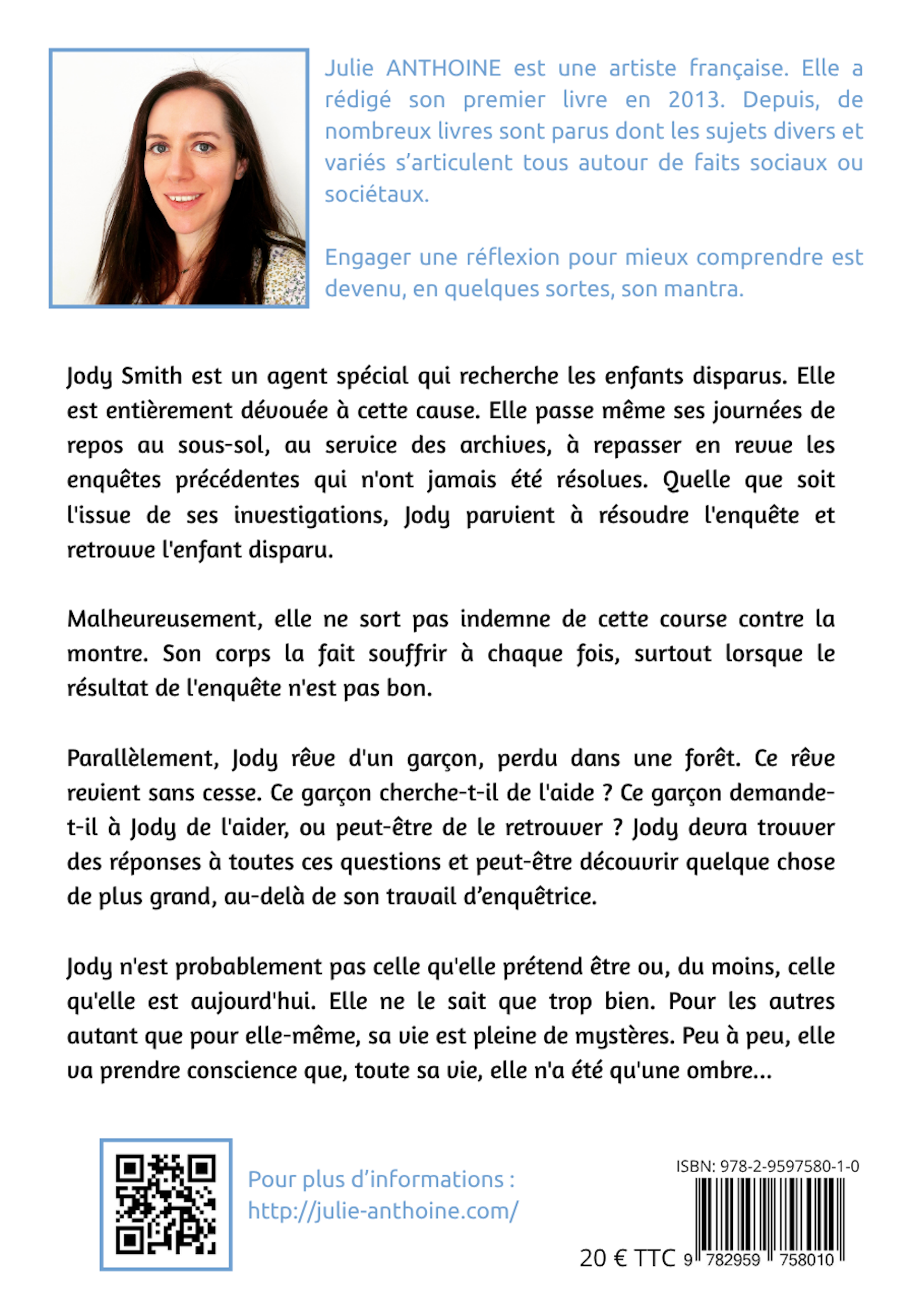 Jody Smith est un agent spécial qui recherche les enfants disparus. Elle est entièrement dévouée à cette cause. Elle passe même ses journées de repos à repasser en revue les enquêtes précédentes qui n'ont jamais été résolues. Quelle que soit l'issue de ses investigations, Jody parvient à résoudre l'enquête et retrouve l'enfant disparu.
