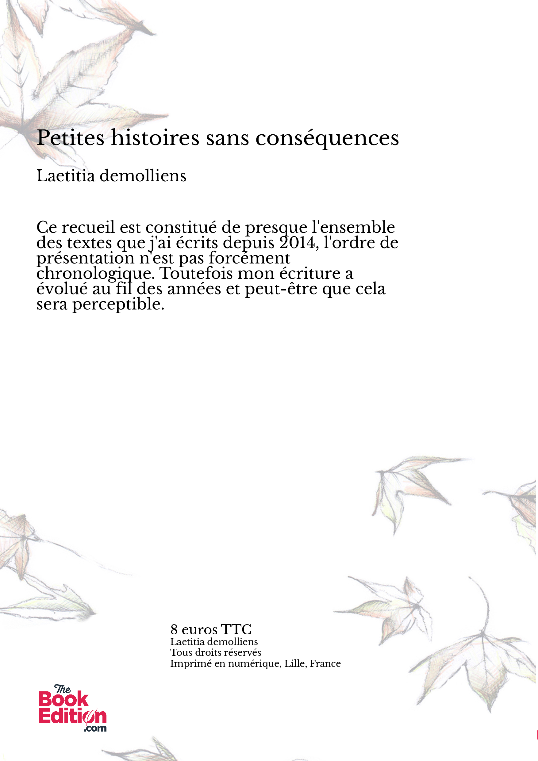 Ce recueil est constitué de presque l'ensemble des textes que j'ai écrits depuis 2014, l'ordre ne présentation n'est pas forcément chronologique. Toutefois mon écriture a évolué au fil des années et peut-être que cela sera perceptible.