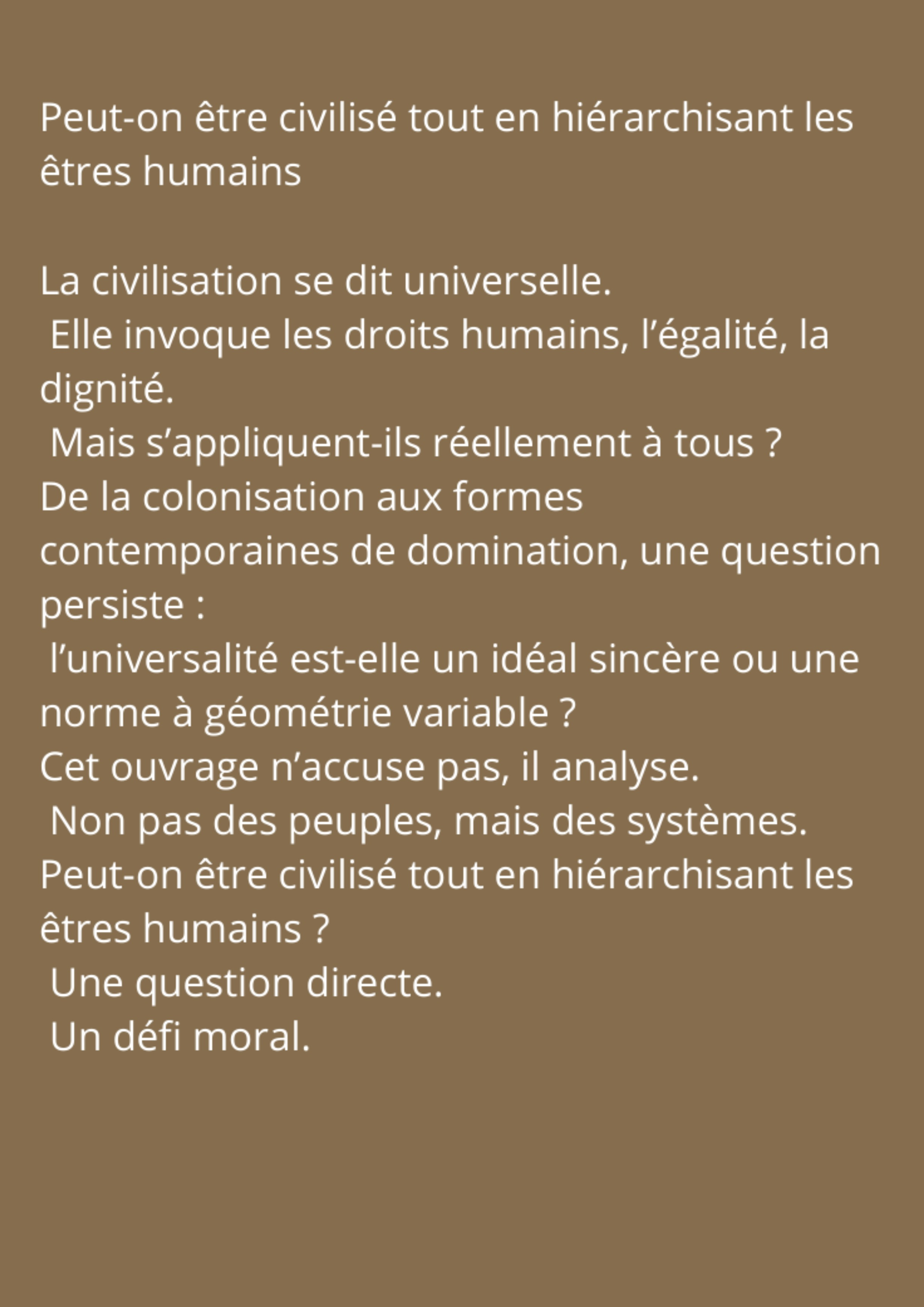 De la colonisation aux rapports de domination contemporains, des hiérarchies raciales héritées du passé aux crises géopolitiques actuelles, une question persiste : l’universalité est-elle un idéal sincère ou une norme à géométrie variable ?