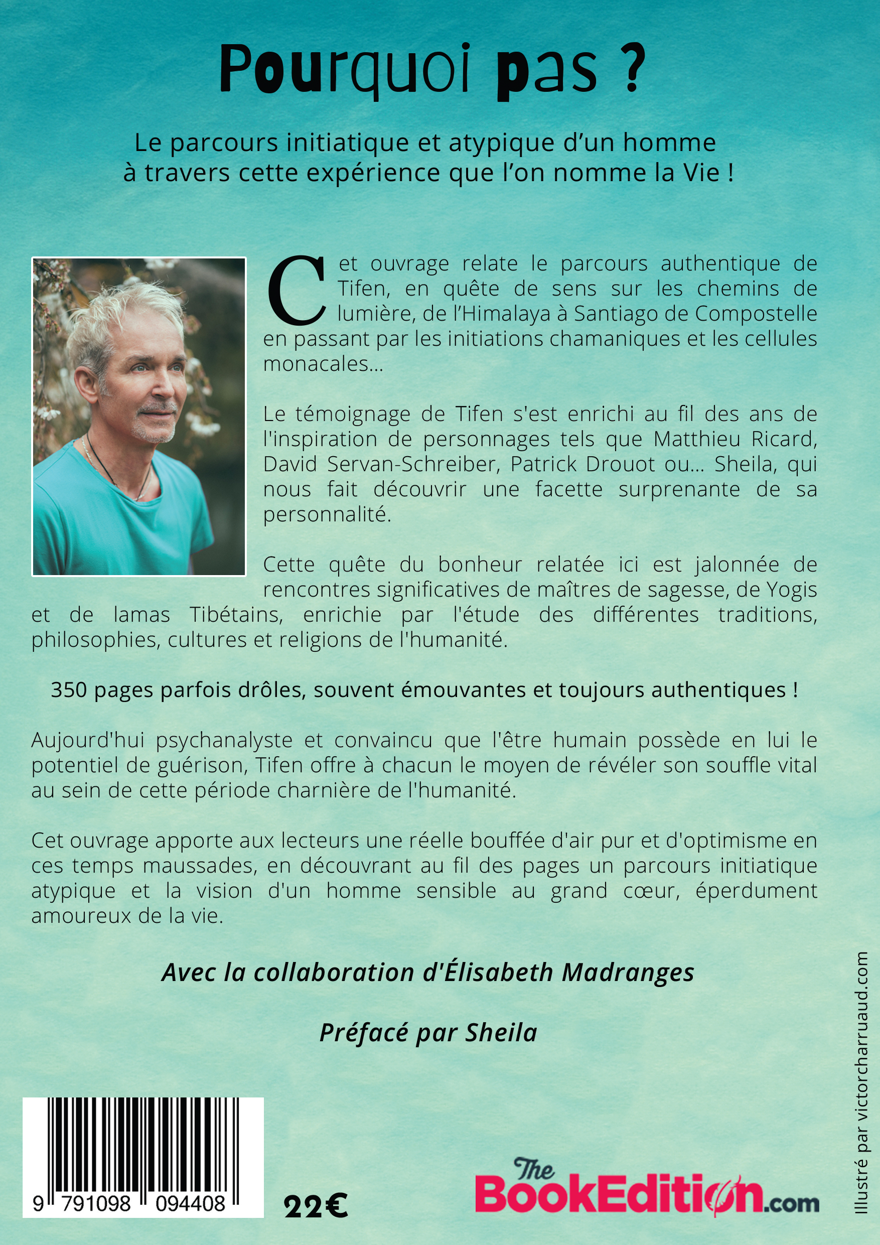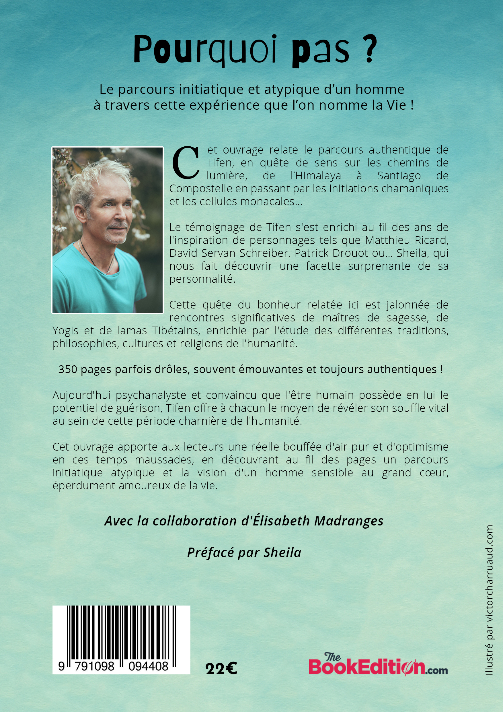 "Pourquoi pas ?" est un récit original sur les chemins de lumière, de l'Himalaya à Santiago de Compostelle en passant par les initiations chamaniques et les cellules monacales...Le témoignage de Tifen* s'est enrichi au fil des ans par la rencontre significative de maîtres de sagesse, de Yogis et de lamas Tibétains.