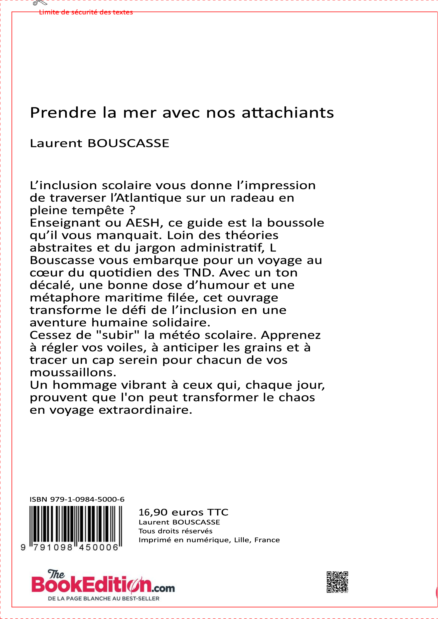 Enseignant ou AESH, ce guide est la boussole qu’il vous manquait. Loin des théories abstraites et du jargon administratif, L Bouscasse vous embarque pour un voyage au cœur du quotidien des TND. Avec un ton décalé, une bonne dose d’humour et une métaphore maritime filée, cet ouvrage transforme le défi de l’inclusion en une aventure humaine solidaire.