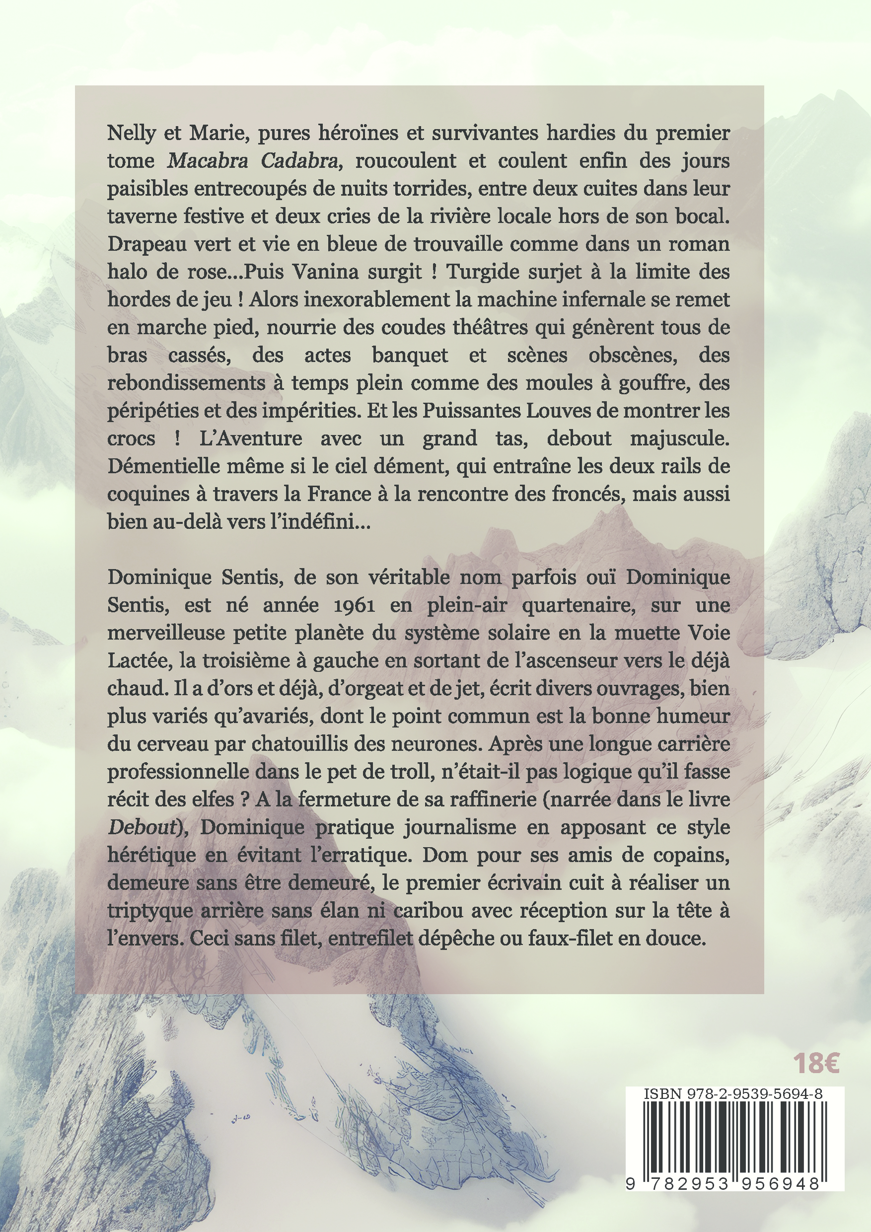 Nelly et Marie, pures héroïnes et survivantes hardies du premier tome Macabra Cadabra, roucoulent et coulent enfin des jours paisibles entrecoupés de nuits torrides, entre deux cuites dans leur taverne festive et deux cries de la rivière locale hors de son bocal. Drapeau vert et vie en bleue de trouvaille comme dans un roman halo de rose...Puis Vanina surgit ! Turgide surjet à la limite des hordes de jeu ! Alors inexorablement la machine infernale se remet en marche pied, nourrie des coudes théâtres qui génèrent tous de bras cassés, des actes banquet et scènes obscènes, des rebondissements à temps plein comme des moules à gouffre, des péripéties et des impérities. Et les Puissantes Louves de montrer les crocs !