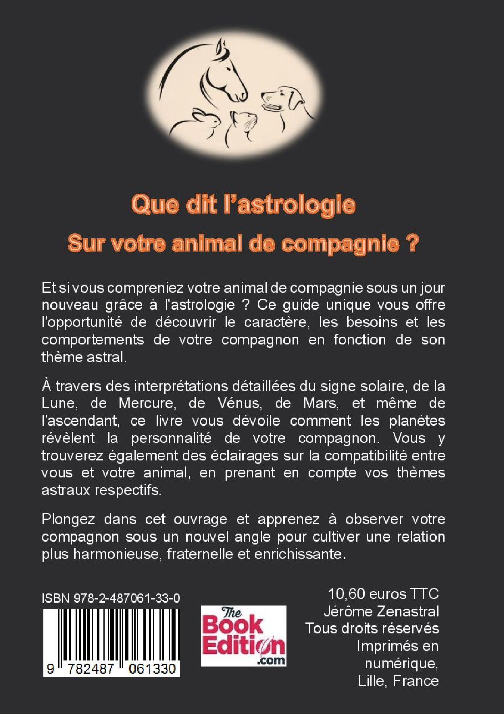 À travers des interprétations du Soleil, de la Lune, de Mercure, de Vénus, de Mars, et même de l'ascendant, ce livre vous dévoile comment les planètes révèlent la personnalité de votre compagnon. Vous y trouverez également des éclairages sur la compatibilité entre vous et votre animal, en prenant en compte vos thèmes astraux respectifs.