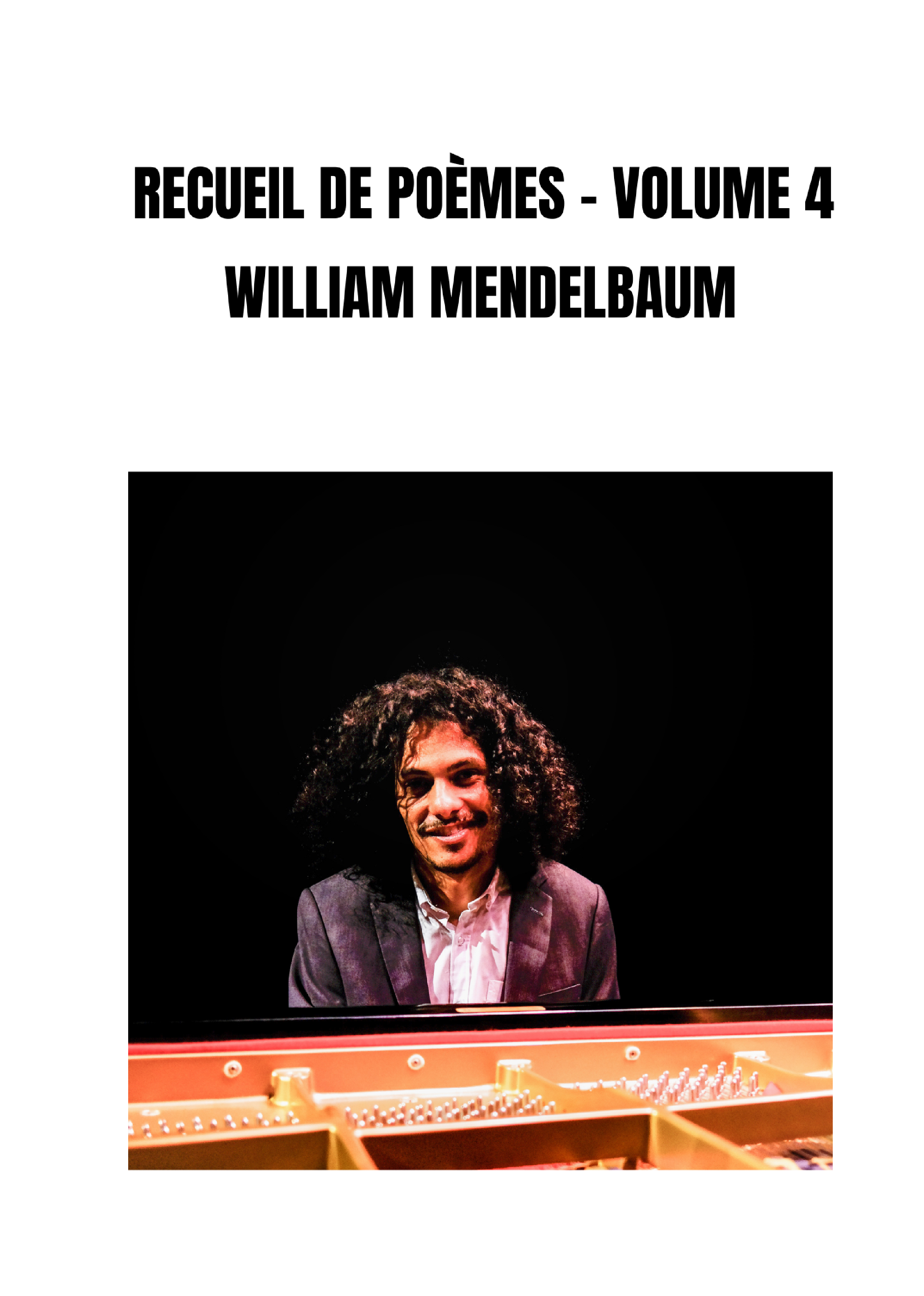 William Mendelbaum est un pianiste français d’origine réunionnaise, marocaine et polonaise. Il est né le 30 septembre 1996 à Évry. Pianiste international, et lauréat de nombreux concours internationaux, c’est un artiste complet aussi bien compétent sur scène qu'en studio. C’est également un compositeur de musique de film et il collabore avec les autres arts au piano (peinture, le dessin, la poésie, la danse, le ciné-concert, la cuisine gastronomique sonore, le cirque, le théâtre). C’est d’ailleurs suite à une expérience avec la poésie, qu’il décide de se mettre à écrire des poèmes. C’est une manière pour lui de créer mais différemment qu’au piano. Ainsi vous découvrirez ici, une autre facette de cet artiste.