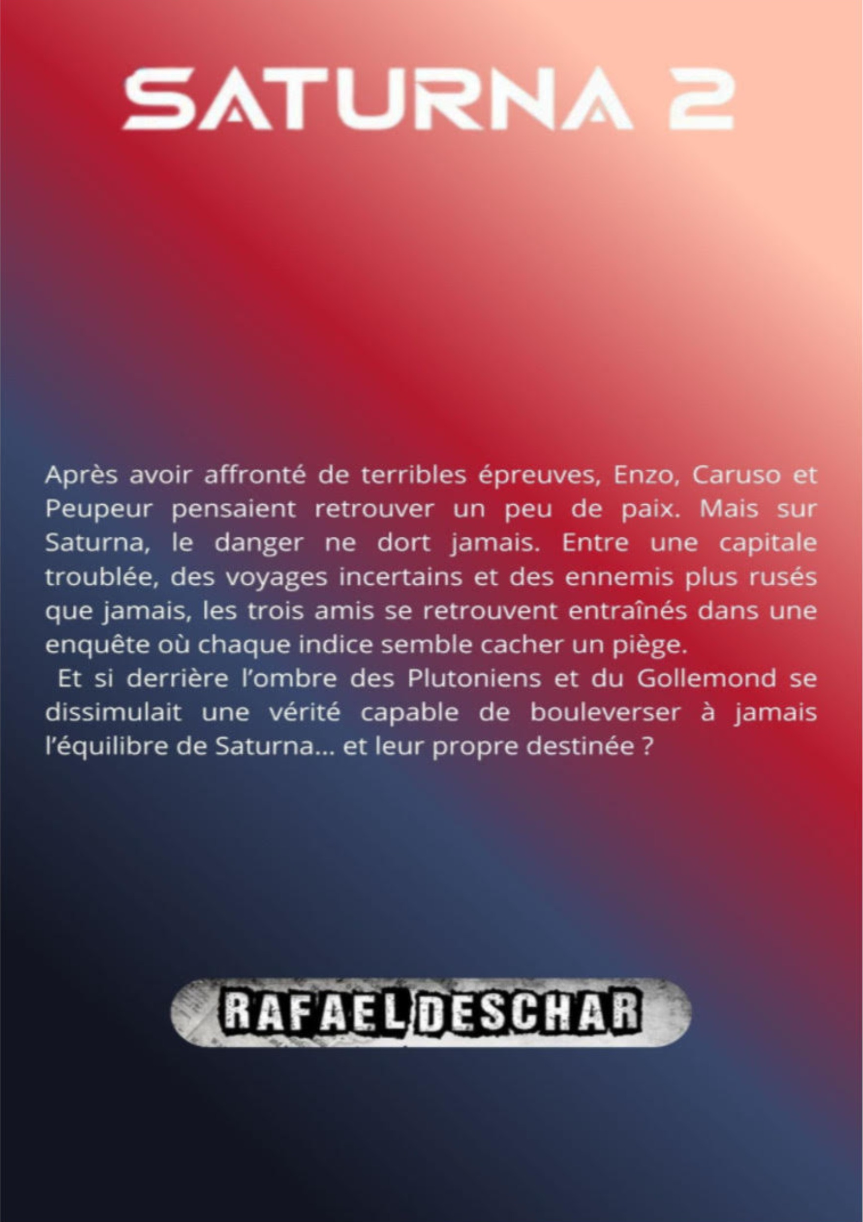 Un an après leur retour de Saturna, Enzo pensait avoir retrouvé une vie normale. Mais lorsque des symboles inquiétants apparaissent sur Terre et que la mort du roi de Saturna est annoncée, tout bascule. Aidé de Peupeur et d’Obiwan, il obtient une sphère magique capable de voyager entre les mondes.