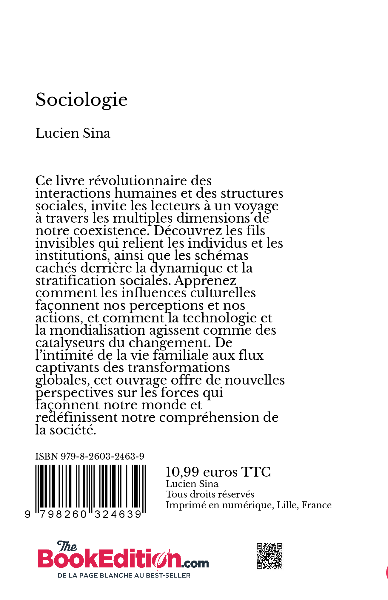 Ce livre révolutionnaire des interactions humaines et des structures sociales, invite les lecteurs à un voyage à travers les multiples dimensions de notre coexistence. Découvrez les fils invisibles qui relient les individus et les institutions, ainsi que les schémas cachés derrière la dynamique et la stratification sociales. Apprenez comment les influences culturelles façonnent nos perceptions et nos actions, et comment la technologie et la mondialisation agissent comme des catalyseurs du changement. De l’intimité de la vie familiale aux flux captivants des transformations globales, cet ouvrage offre de nouvelles perspectives sur les forces qui façonnent notre monde et redéfinissent notre compréhension de la société.