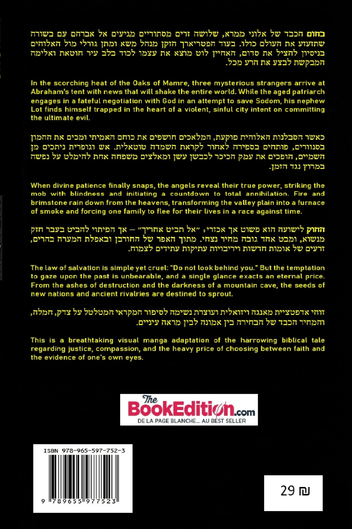 Sous la chaleur accablante des chênes de Mamré, trois mystérieux étrangers arrivent auprès d'Abraham avec des nouvelles qui bouleverseront le monde entier. Tandis que le patriarche vieillissant négocie un pacte crucial avec Dieu pour tenter de sauver Sodome, son neveu Lot se retrouve piégé au cœur d'une cité corrompue et violente, vouée au pire.