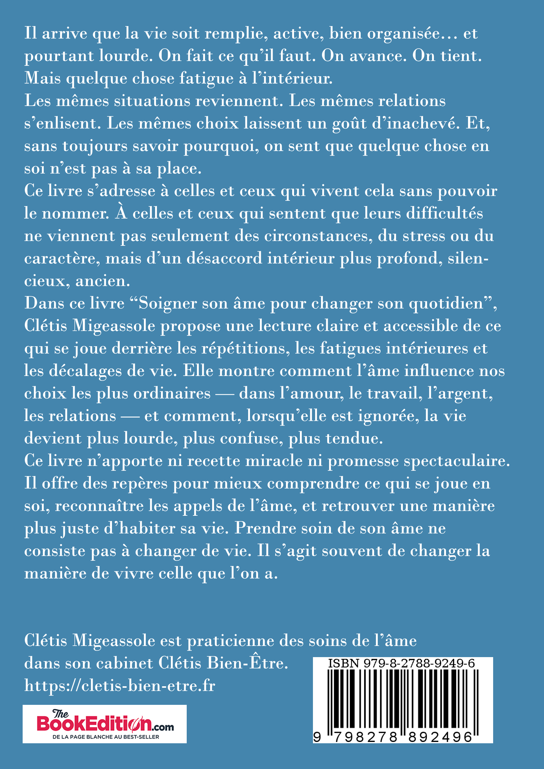 Sans dogme ni promesse spectaculaire, ce livre offre des repères clairs pour mieux se comprendre, reconnaître ce qui se joue intérieurement et avancer avec plus de paix, de cohérence et de liberté.