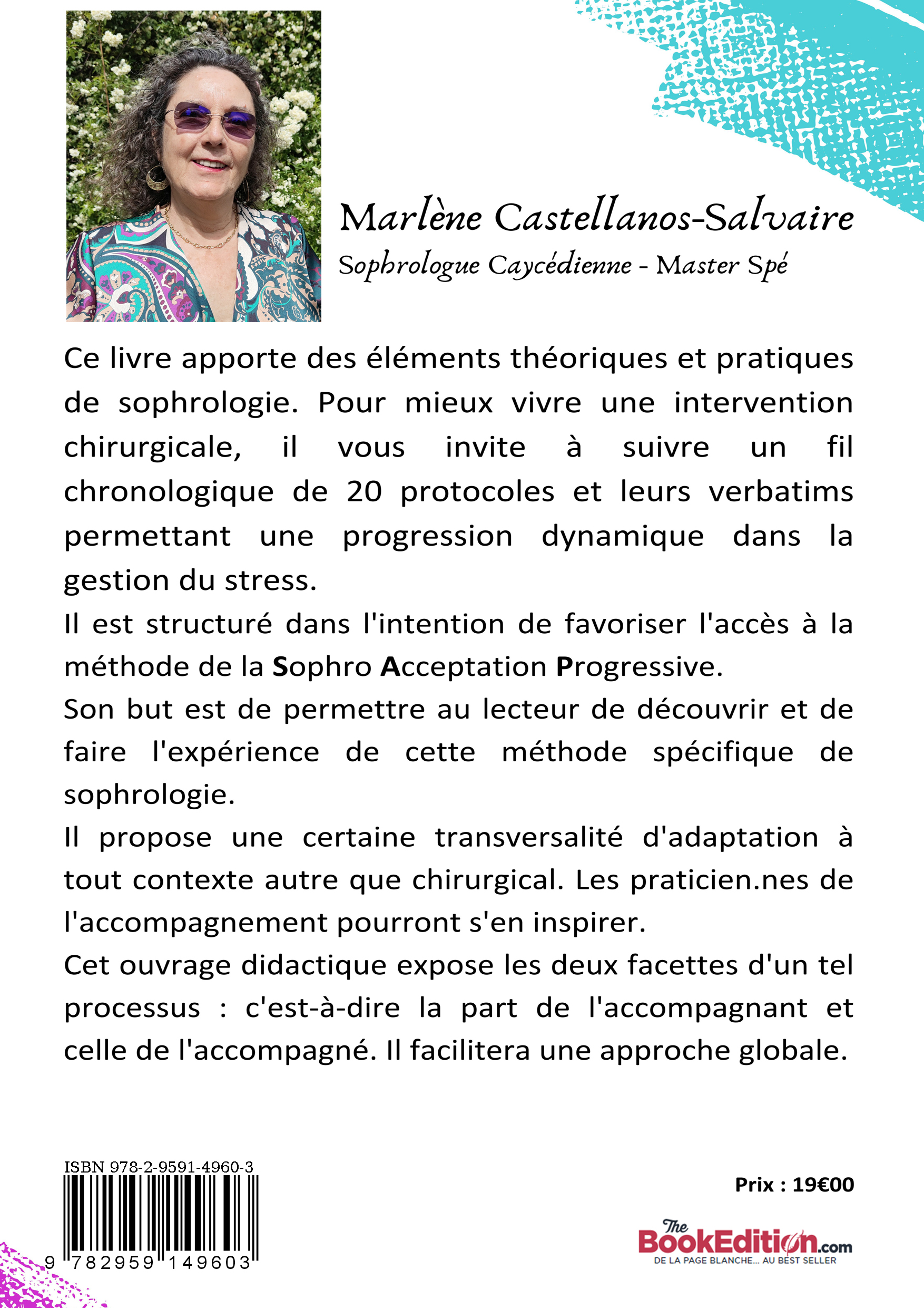 Ce livre propose la mise en pratique d’un accompagnement en Sophro Acceptation Progressive, pour mieux gérer le stress, face à l'imminence d'une intervention chirurgicale. Il s'adresse à tous les publics, ainsi qu'aux professionnels de l'accompagnement. Cette technique puise ses références dans la méthode Caycédienne: vous y trouverez les principes généraux et pratiques vous permettant de vous auto-accompagner ainsi qu'un témoignage concret. L'auteure Master-Spé en Sophrologie propose un "training" rapidement opérationnel de 20 séances planifiées spécifiquement créées pour mieux gérer ce type d'évènement. Les principes "d'action positive" et de "répétition vivantielle" sont au cœur de la S.A.P qui vous est proposée.
