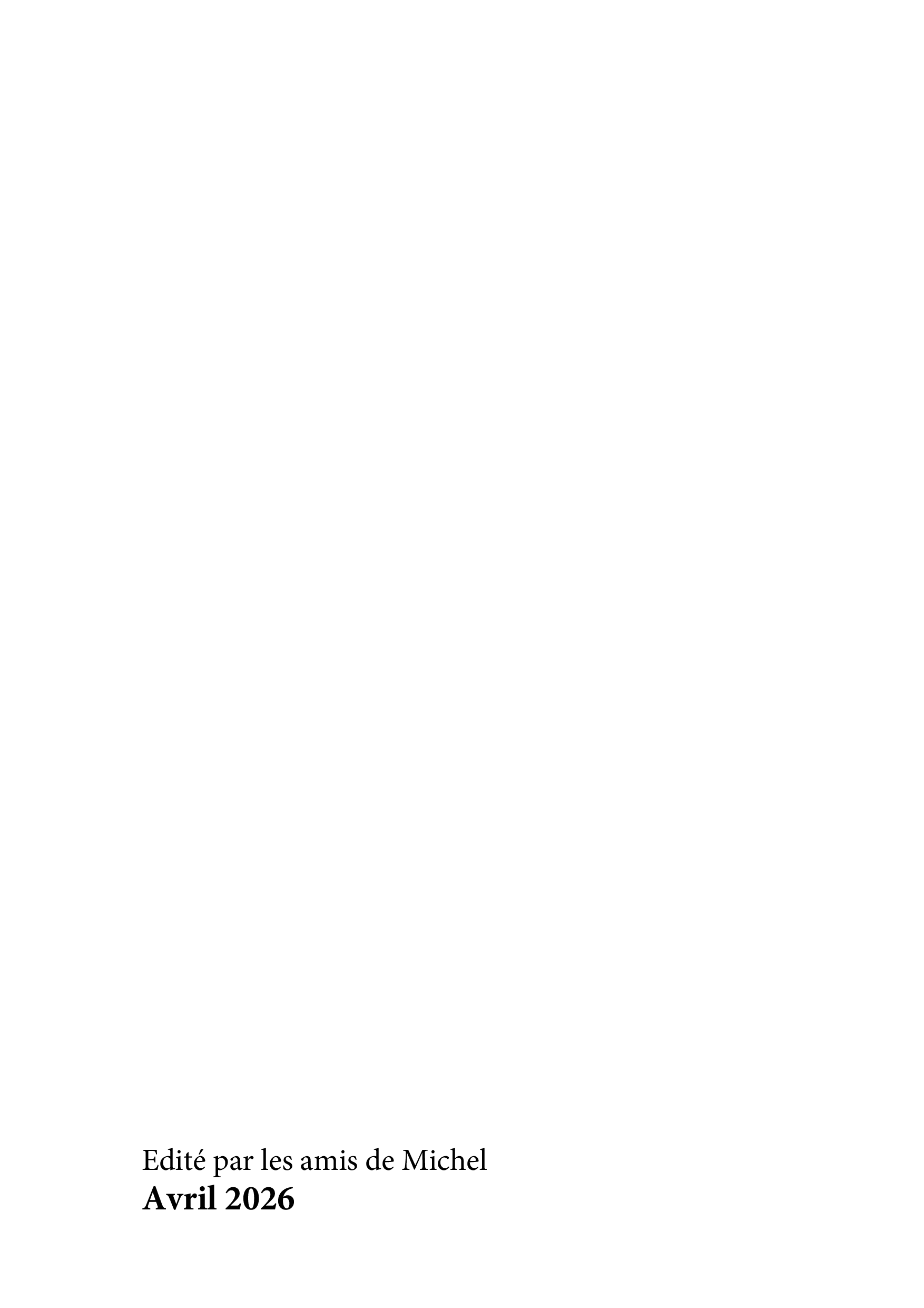 Au cœur de cette soirée habitée par la gratitude et la mémoire, les témoignages ont fait résonner ce que Michel avait semé, souvent discrètement, mais toujours profondément, dans nos vies. De cette communion est née l’envie de réaliser ce recueil : garder vivante la trace de son passage et des fruits de son engagement. Merci à chacun d’avoir répondu présent, d’avoir pris le temps d’écrire, de partager, de se souvenir, et de laisser remonter toutes ces pépites qu’il a déposées sur nos chemins. Que ces pages prolongent la rencontre.