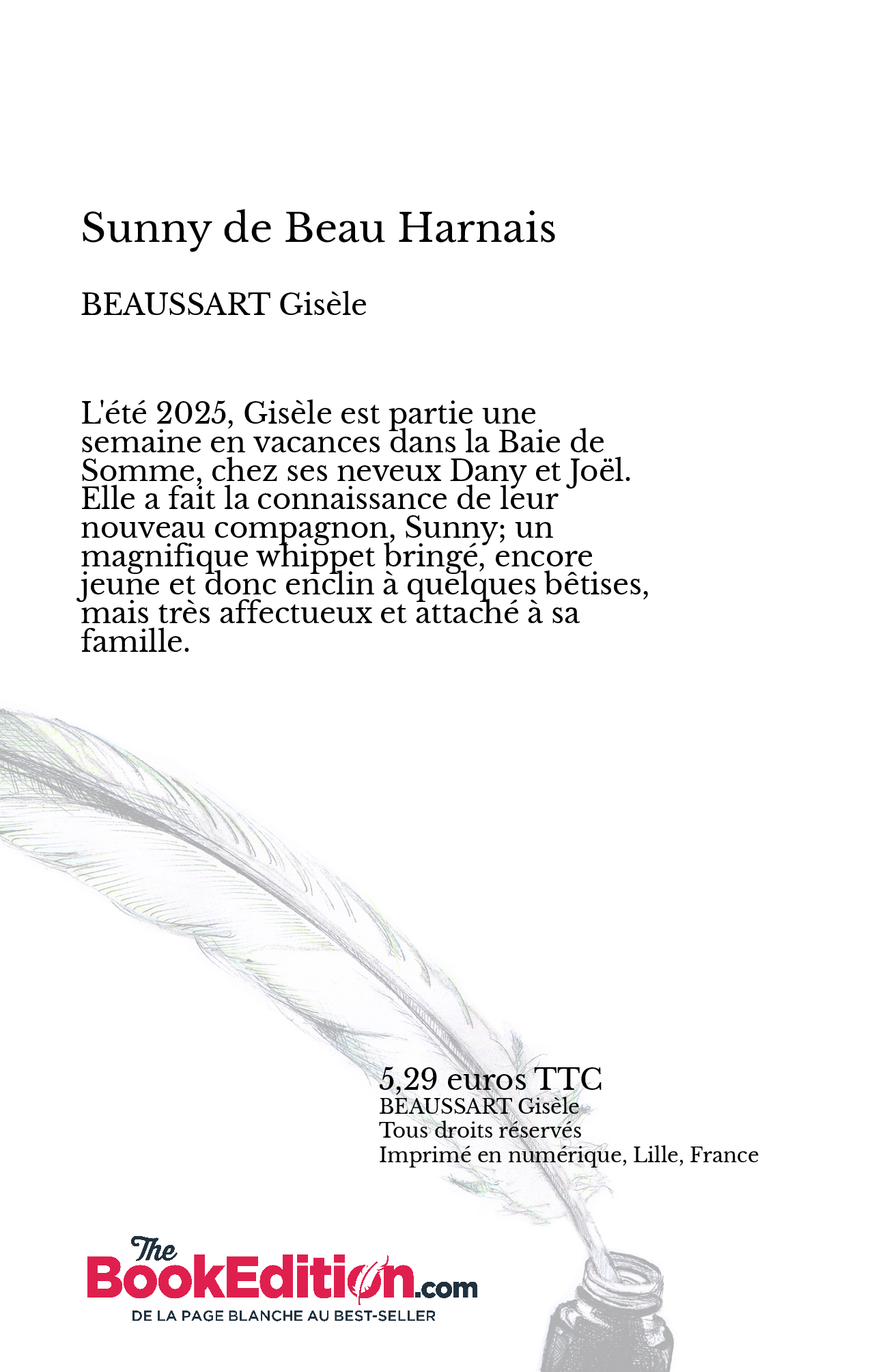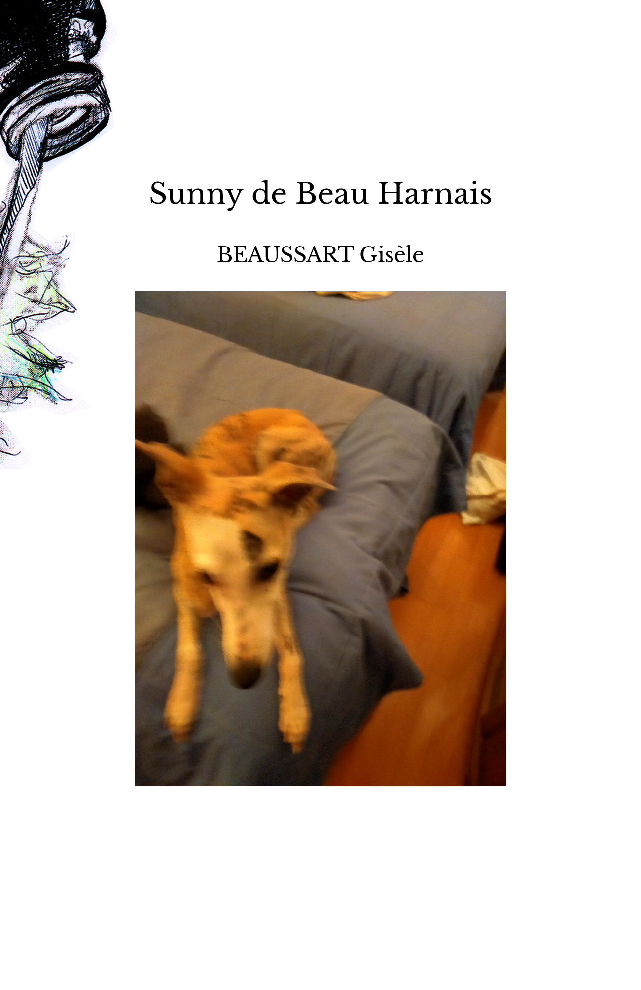 L'été 2025, Gisèle est partie une semaine en vacances dans la Baie de Somme, chez ses neveux Dany et Joël. Elle a fait la connaissance de leur nouveau compagnon, Sunny; un magnifique whippet bringé, encore jeune et donc enclin à quelques bêtises, mais très affectueux et attaché à sa famille.