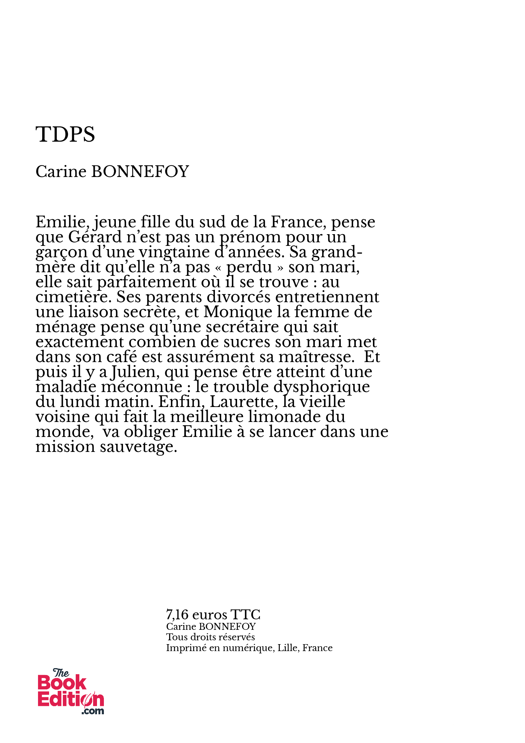 Emilie, jeune fille du sud de la France, pense que Gérard n’est pas un prénom pour un garçon d’une vingtaine d’années. Sa grand-mère dit qu’elle n’a pas « perdu » son mari, elle sait parfaitement où il se trouve : au cimetière. Ses parents divorcés entretiennent une liaison secrète, et Monique la femme de ménage pense qu’une secrétaire qui sait exactement combien de sucres son mari met dans son café est assurément sa maîtresse. Et puis il y a Julien, qui pense être atteint d’une maladie méconnue : le trouble dysphorique du lundi matin. Enfin, Laurette, la vieille voisine qui fait la meilleure limonade du monde, va obliger Emilie à se lancer dans une mission sauvetage.
