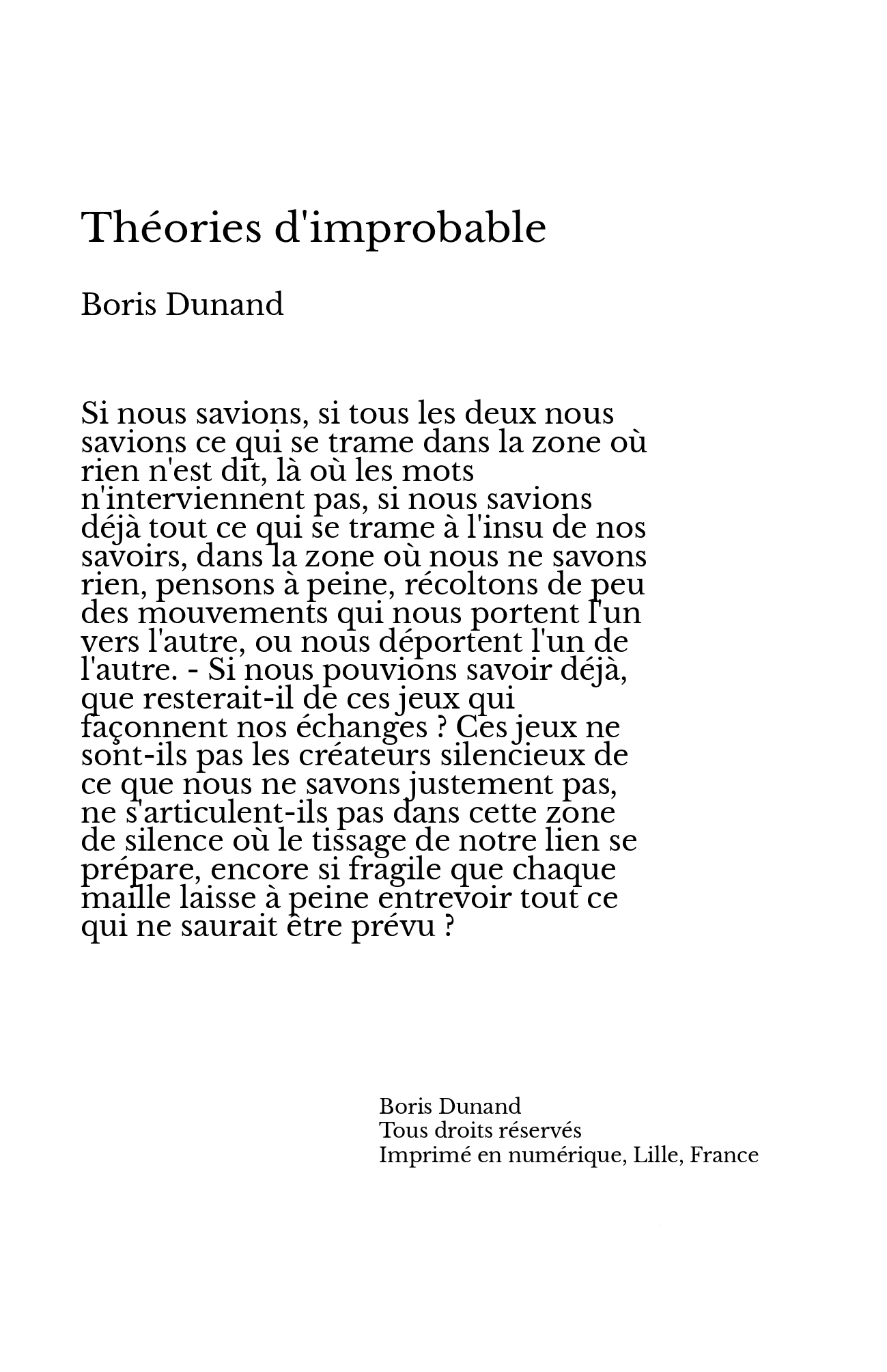 Si nous savions, si tous les deux nous savions ce qui se trame dans la zone où rien n'est dit, là où les mots n'interviennent pas, si nous savions déjà tout ce qui se trame à l'insu de nos savoirs, dans la zone où nous ne savons rien, pensons à peine, récoltons de peu des mouvements qui nous portent l'un vers l'autre, ou nous déportent l'un de l'autre. - Si nous pouvions savoir déjà, que resterait-il de ces jeux qui façonnent nos échanges ?