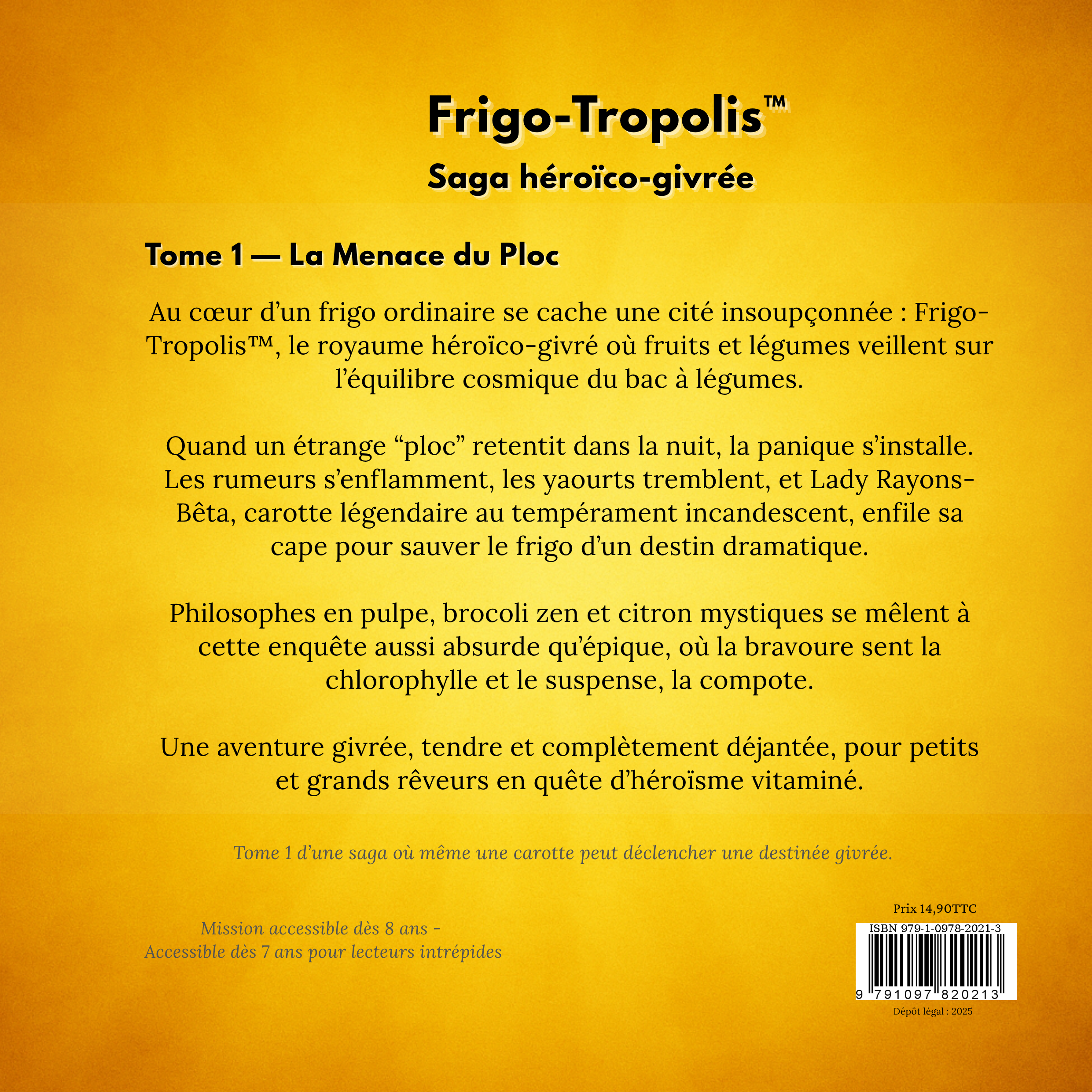 Au cœur d’un réfrigérateur ordinaire se cache une cité extraordinaire : Frigo-Tropolis™, le royaume héroïco-givré où les fruits et légumes veillent sur l’équilibre cosmique du bac à légumes.