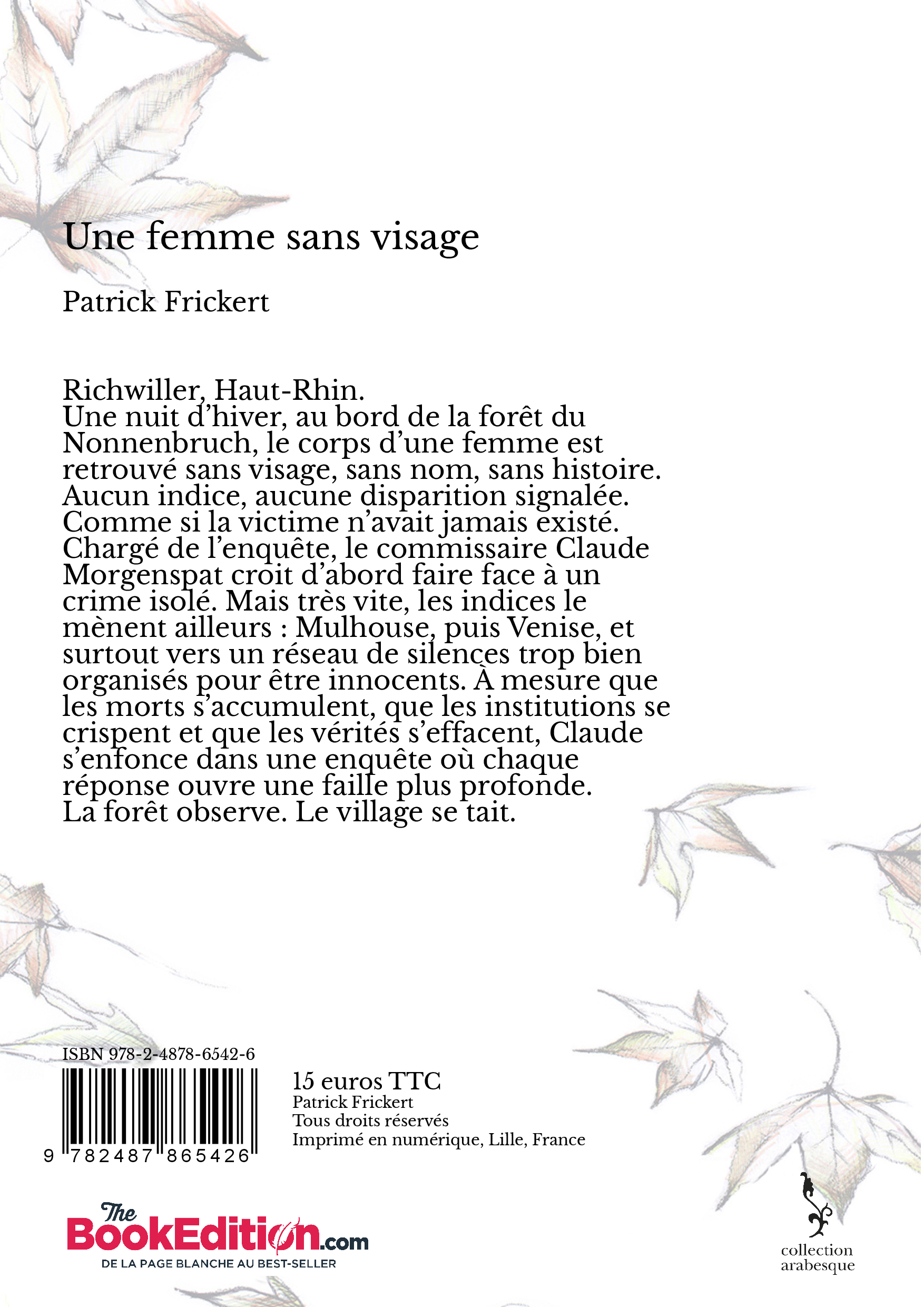 Une nuit d’hiver, au bord de la forêt du Nonnenbruch, le corps d’une femme est retrouvé sans visage, sans nom, sans histoire. Aucun indice, aucune disparition signalée. Comme si la victime n’avait jamais existé. Chargé de l’enquête, le commissaire Claude Morgenspat croit d’abord faire face à un crime isolé. Mais très vite, les indices le mènent ailleurs : Mulhouse, puis Venise, et surtout vers un réseau de silences trop bien organisés pour être innocents. À mesure que les morts s’accumulent, que les institutions se crispent et que les vérités s’effacent, Claude s’enfonce dans une enquête où chaque réponse ouvre une faille plus profonde.