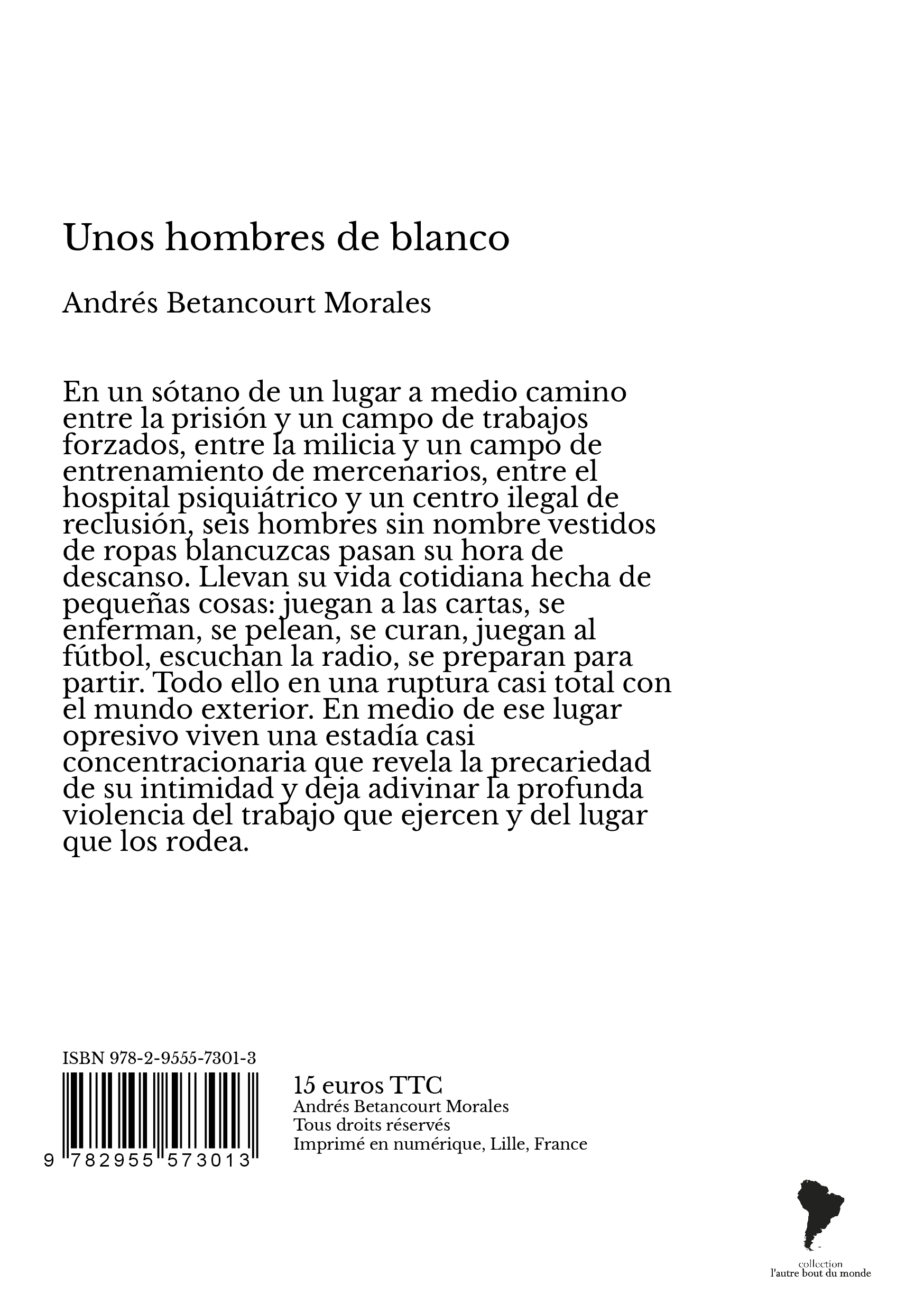 En un sótano de un lugar a medio camino entre la prisión y un campo de trabajos forzados, entre la milicia y un campo de entrenamiento de mercenarios, entre el hospital psiquiátrico y un centro ilegal de reclusión, seis hombres sin nombre vestidos de ropas blancuzcas pasan su
