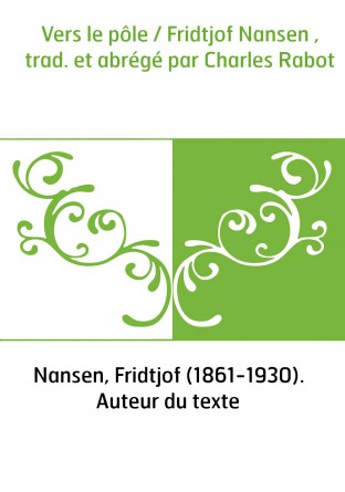 Nansen, Fridtjof (1861-1930). Auteur du texte
