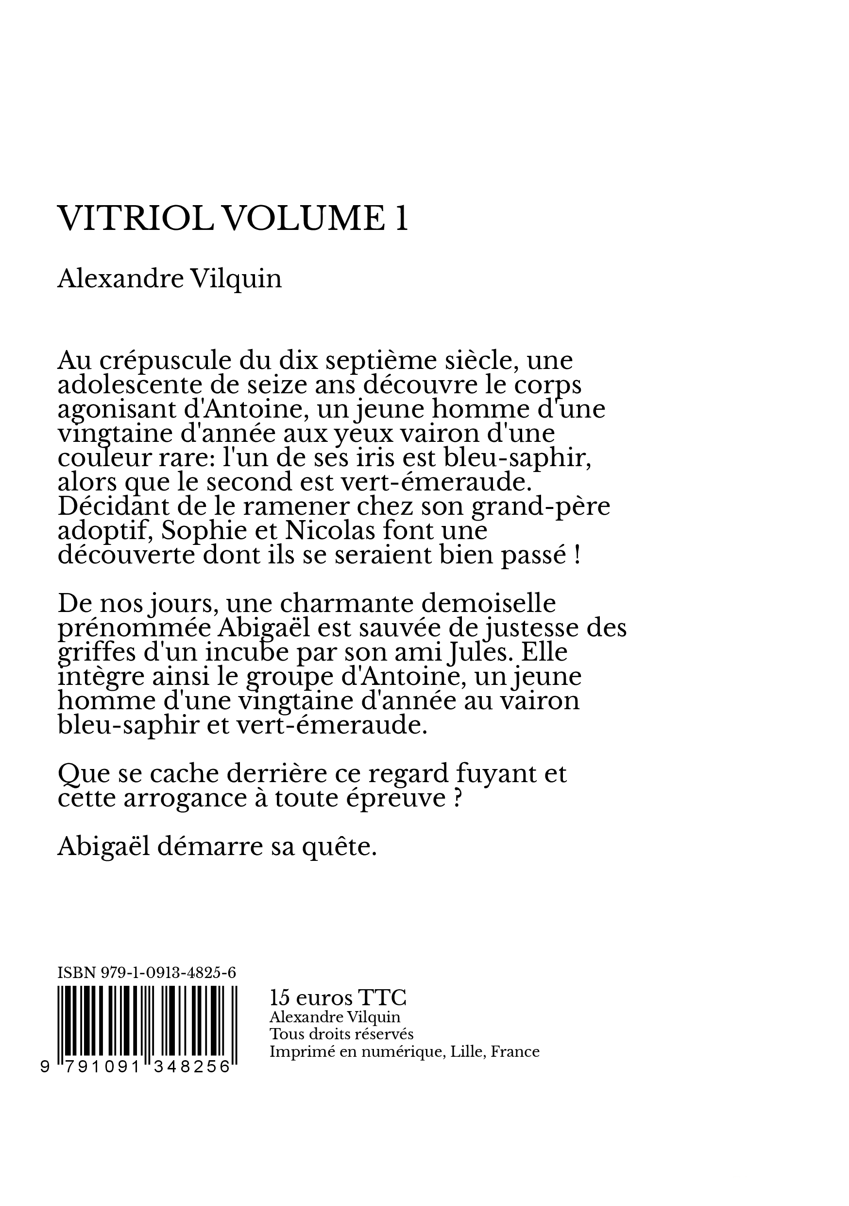 Alexandre a grandi, mûri. Son style s'est affiné, son vocabulaire enrichi. Mais son imaginaire est là, intense, truculent, réjouissant. Au fil des plus de deux cents pages de Vitriol, il vous embarque dans son univers étrange et prodigieusement riche.