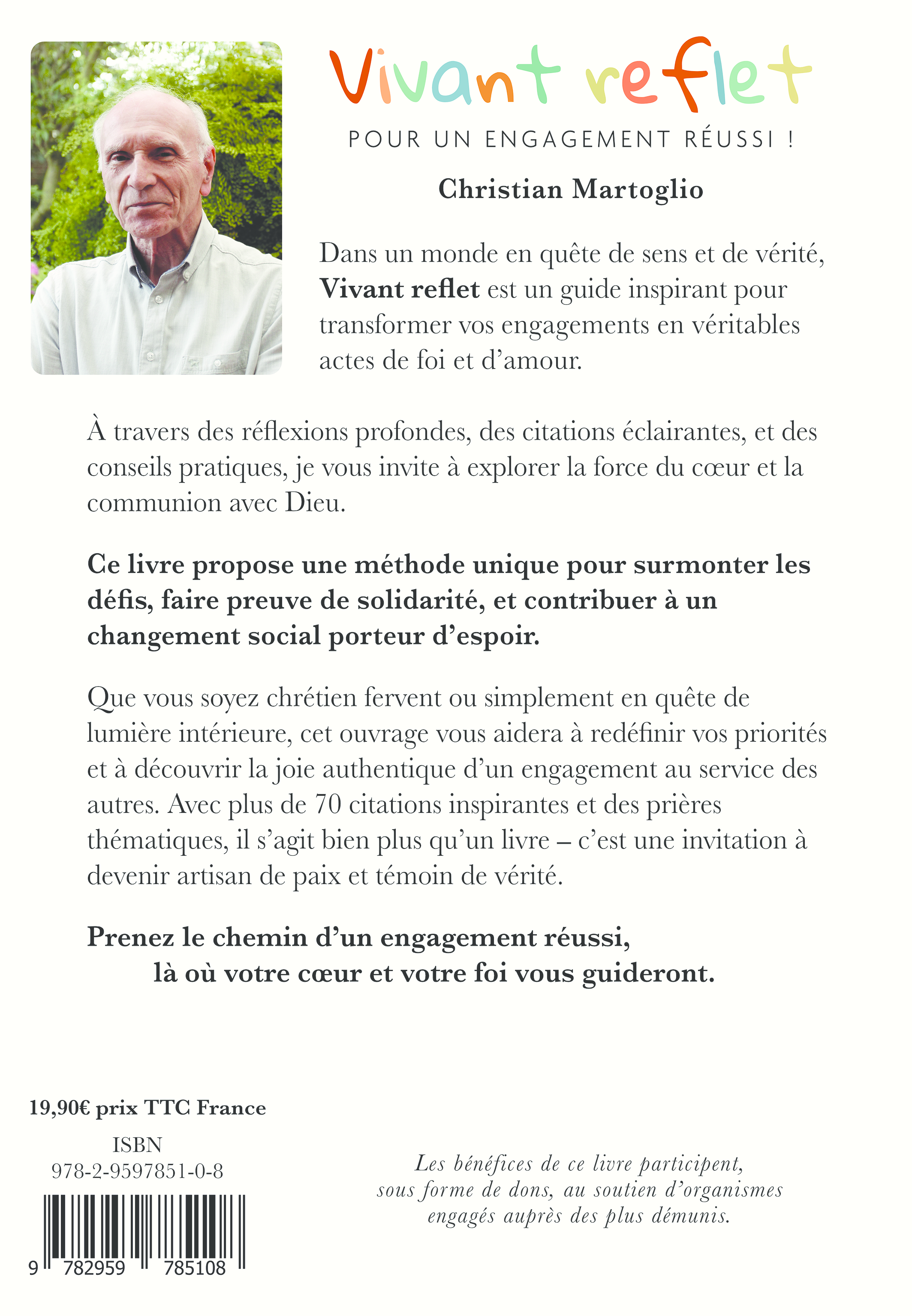 Vivant reflet – Pour un engagement réussi ! est un ouvrage qui invite chacun à entrer dans une dynamique d’engagement chrétien, personnel et communautaire, à la lumière de la Parole de Dieu.