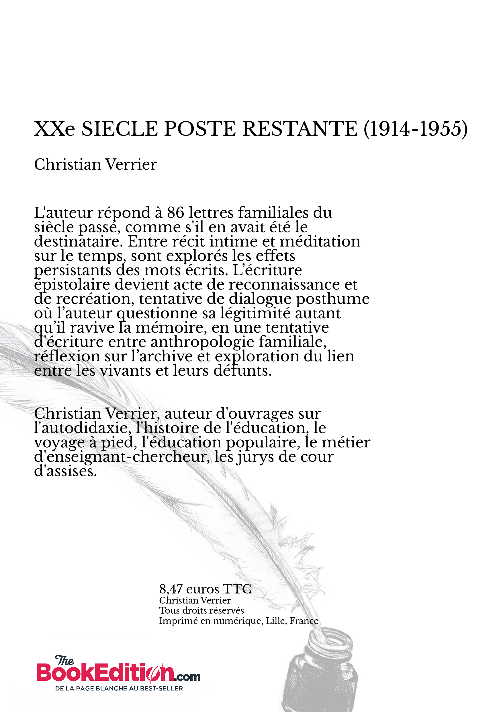 Christian Verrier, auteur d'ouvrages sur l'autodidaxie, l'histoire de l'éducation, le voyage à pied, l'éducation populaire, le métier d'enseignant-chercheur, les jurys de cour d'assises.
